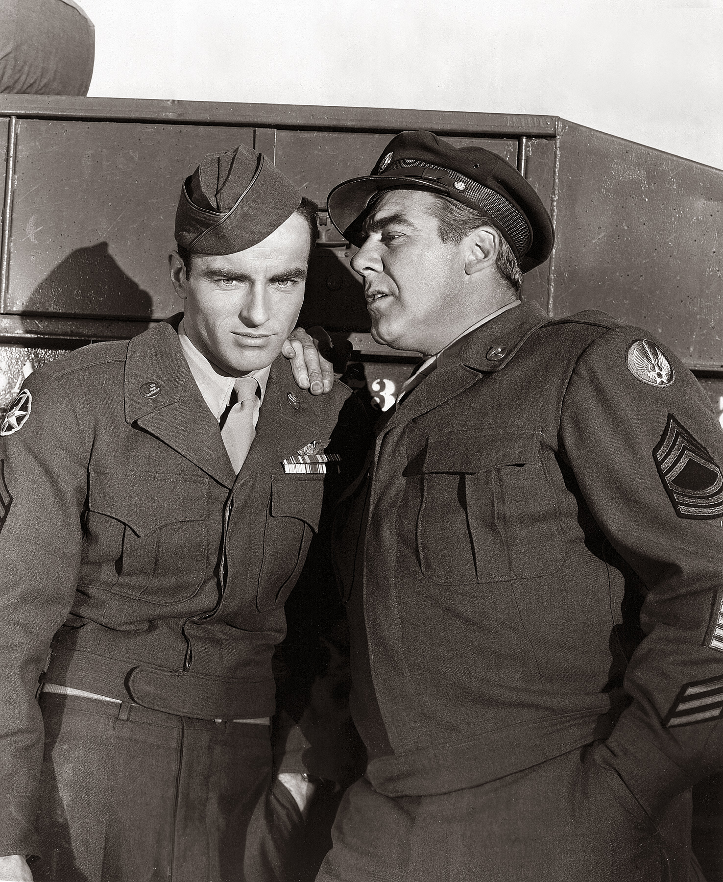 (L to R foreground) Don Dubbins, Montgomery Clift, Frank Sinatra, (Center background) George Reeves