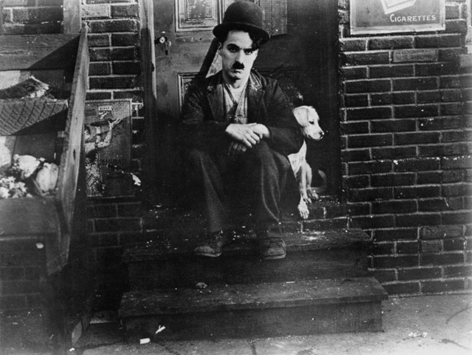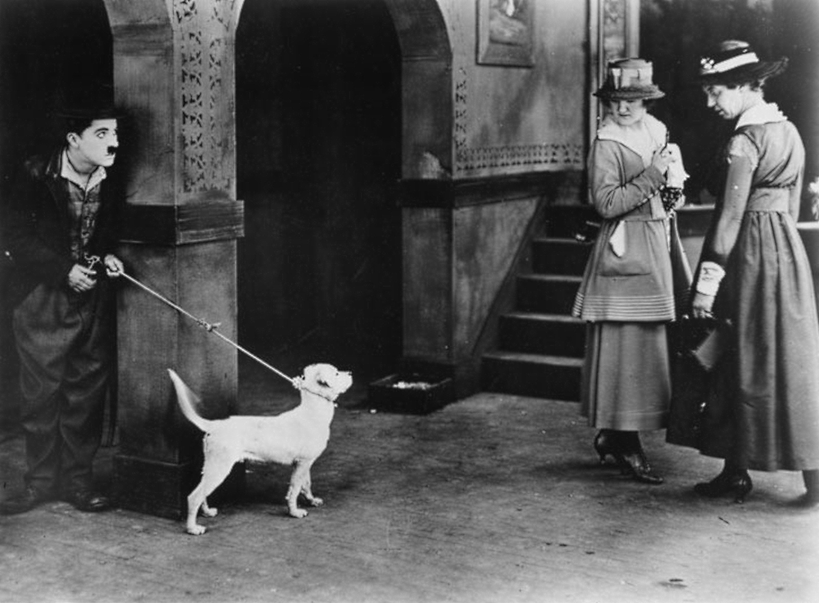 When Charlie goes into a cabaret where Scraps would not be allowed, he hides the