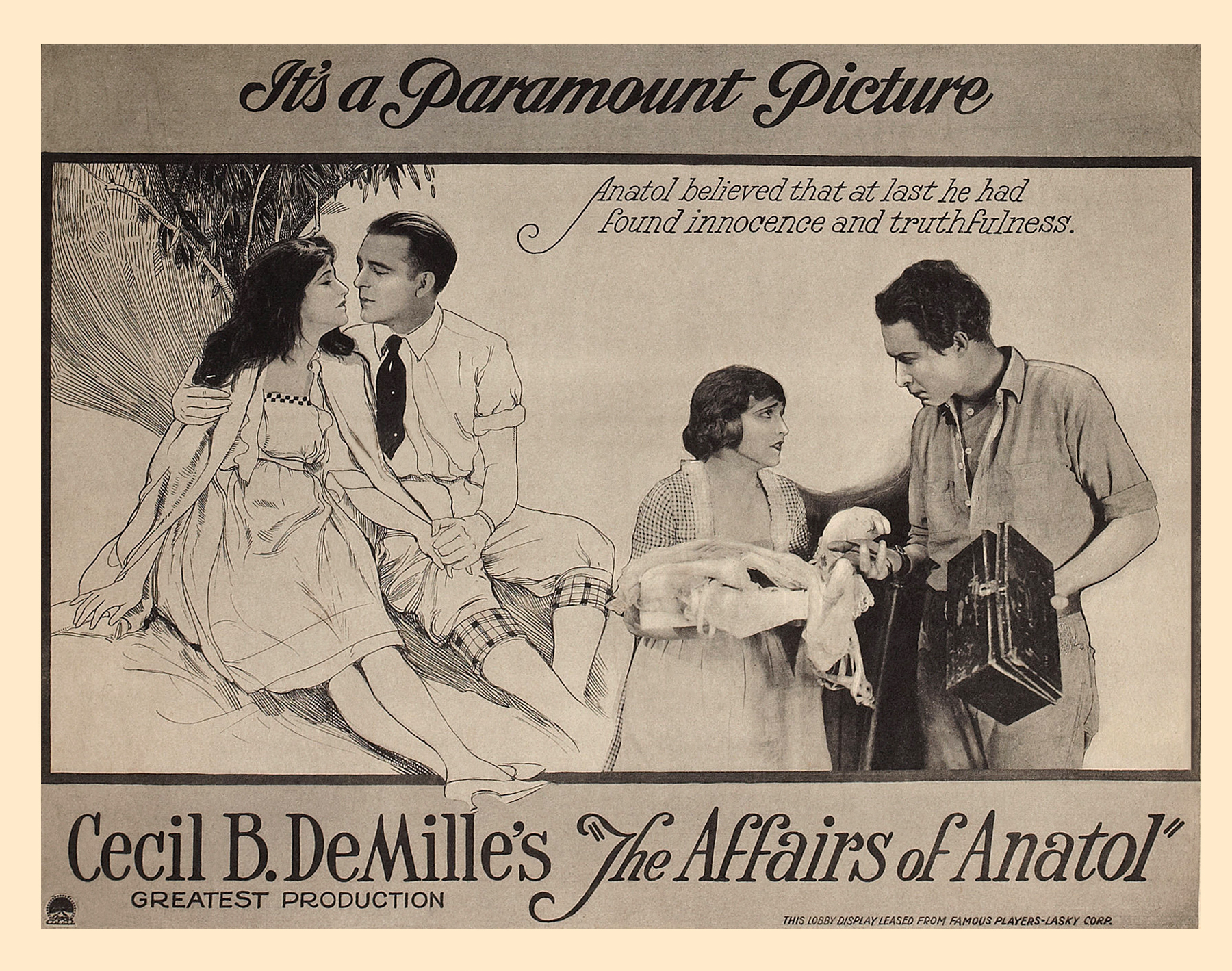 Paramount, 1919.  Directed by Cecil B. DeMille.  Camera:  Karl Struss, Alvin Wyckoff.  With Wallace Reid, Gloria Swanson, Elliott Dexter, Bebe Daniels, Monte Blue, Wanda Hawley, Theodore Roberts, Agnes Ayres, Kosloff Dancers, Polly Moran, Raymond Hatton, Julia Faye, Charles Ogle, Winter Hall, Dorothy Cumming.