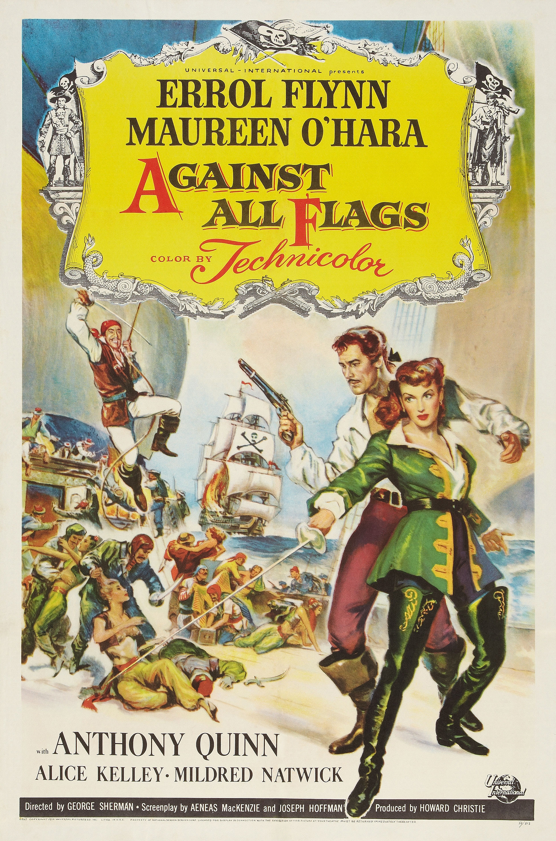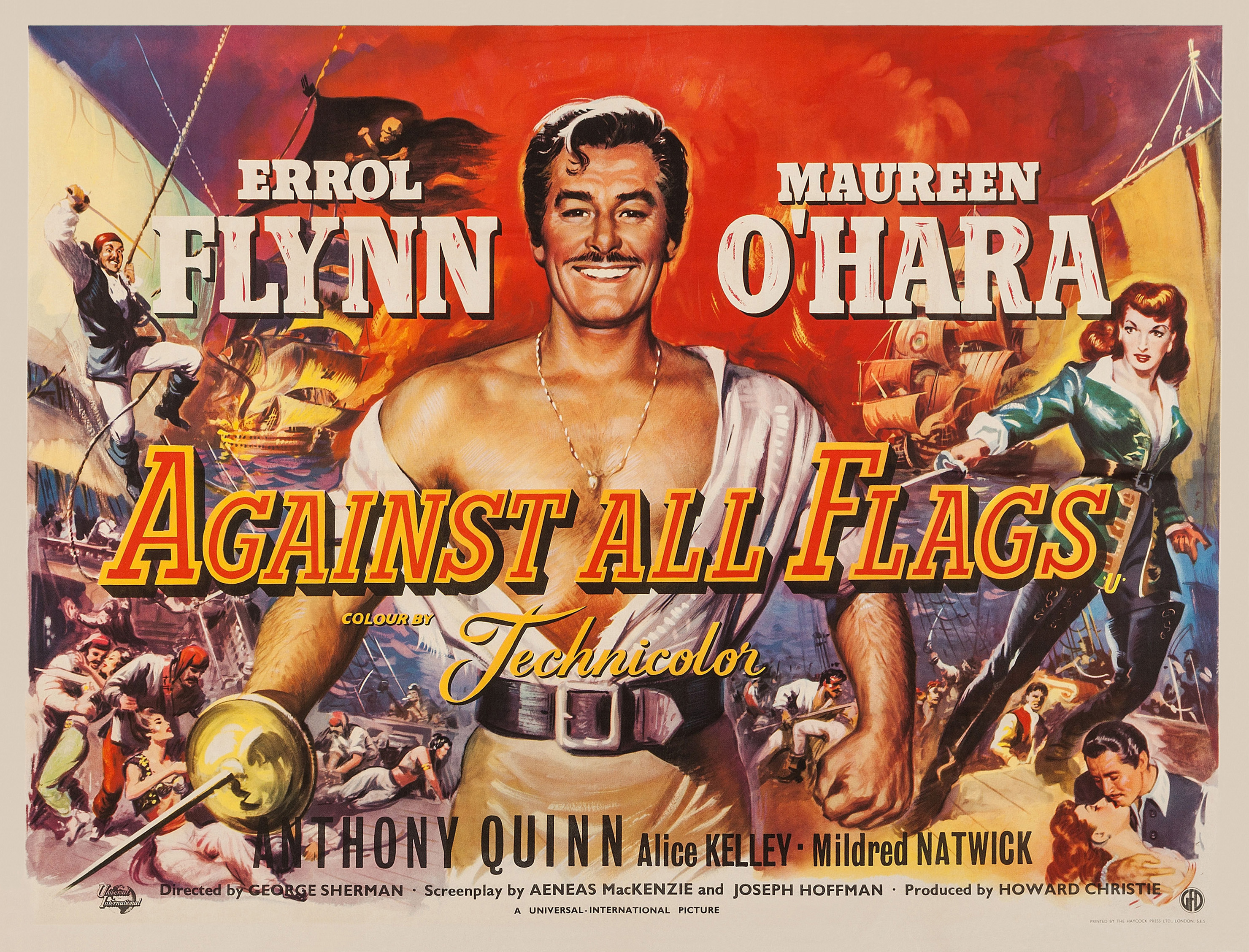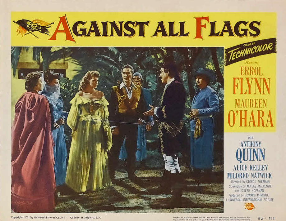Universal, 1952.  Directed by George Sherman.  Camera:  Russell Metty.  With Errol Flynn, Maureen O'Hara, Anthony Quinn, Alice Kelley, Mildred Natwick, Robert Warwick, Harry Cording, John Alderson, Phil Tully, Lester Matthews, Tuder Owen, Maurice Marsac, James Craven, James Fairfax, Michael Ross, Bill Radovich.