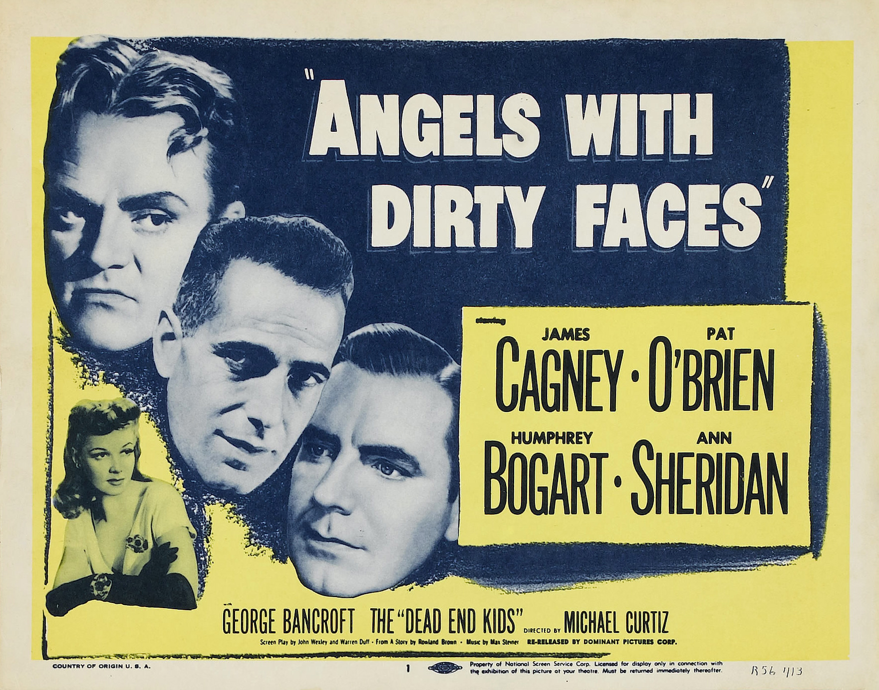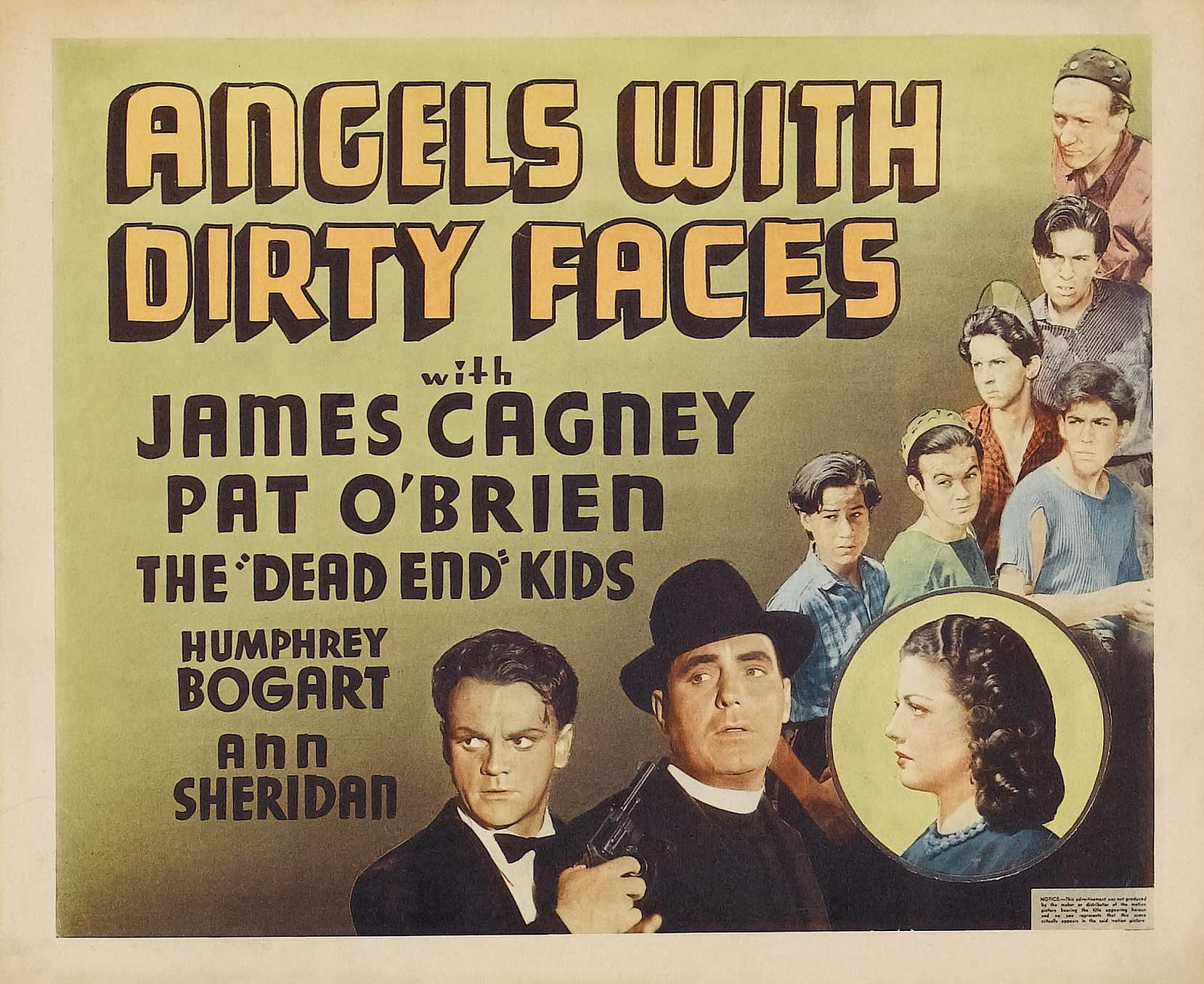 Warner Bros. First National, 1938. Directed by Michael Curtiz.  Camera:  Sol Polito.  With James Cagney, Pat O'Brien, Humphrey Bogart, Ann Sheridan, George Bancroft, Billy Halop, Bobby Jordan, Leo Gorcey, Gabriel Dell, Huntz Hall, Bernard Punsly, Joe Downing, Edward Pawley, Adrian Morris, Frankie Burke, William Tracy, Marilyn Knowlden.