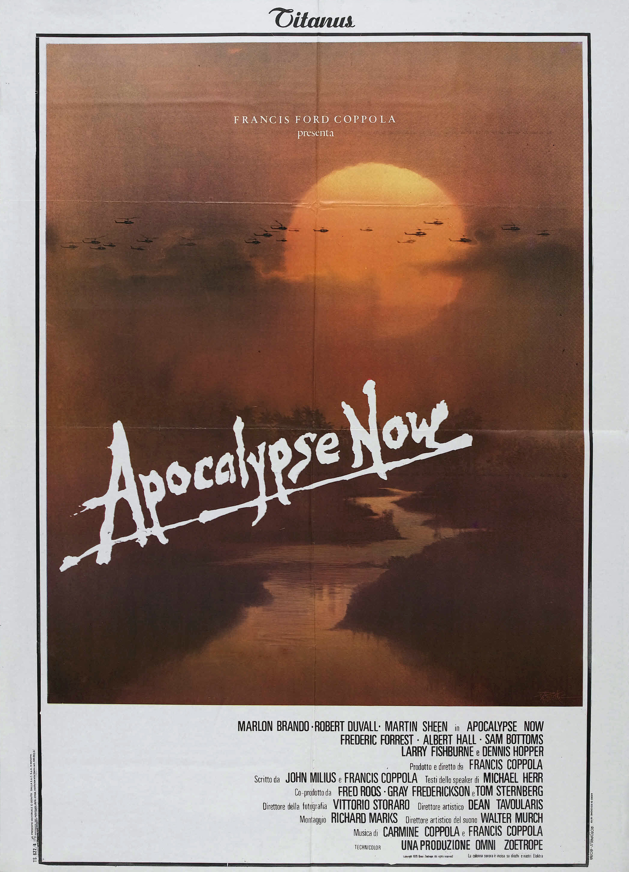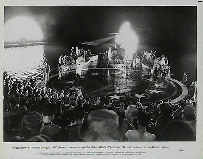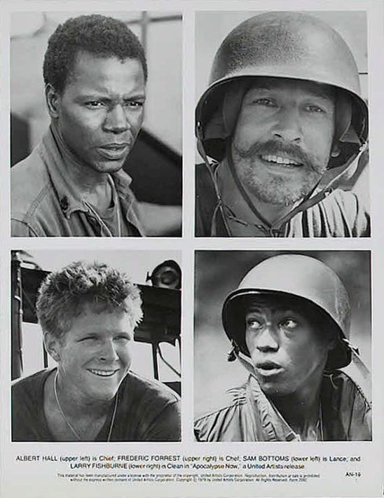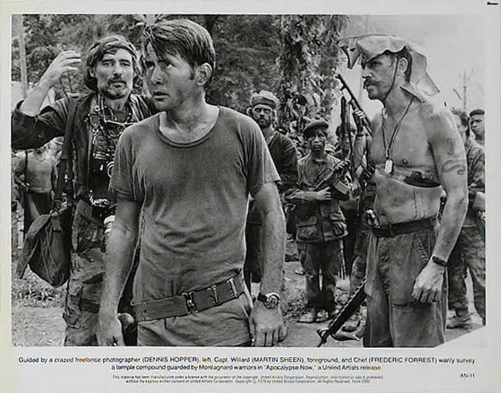 Zoetrope Studios/United Artists, 1979.  Directed by Francis Ford Coppola.  Camera:  Vittorio Storaro.  With Marlon Brando, Martin Sheen, Robert Duvall, Frederic Forrest, Sam Bottoms, Laurence Fishburne, Albert Hall, Harrison Ford, Dennis Hopper, G.D. Spradlin, Jerry Ziesmer, Scott Glenn, Bo Byers, James Keane, Kerry Rossall.