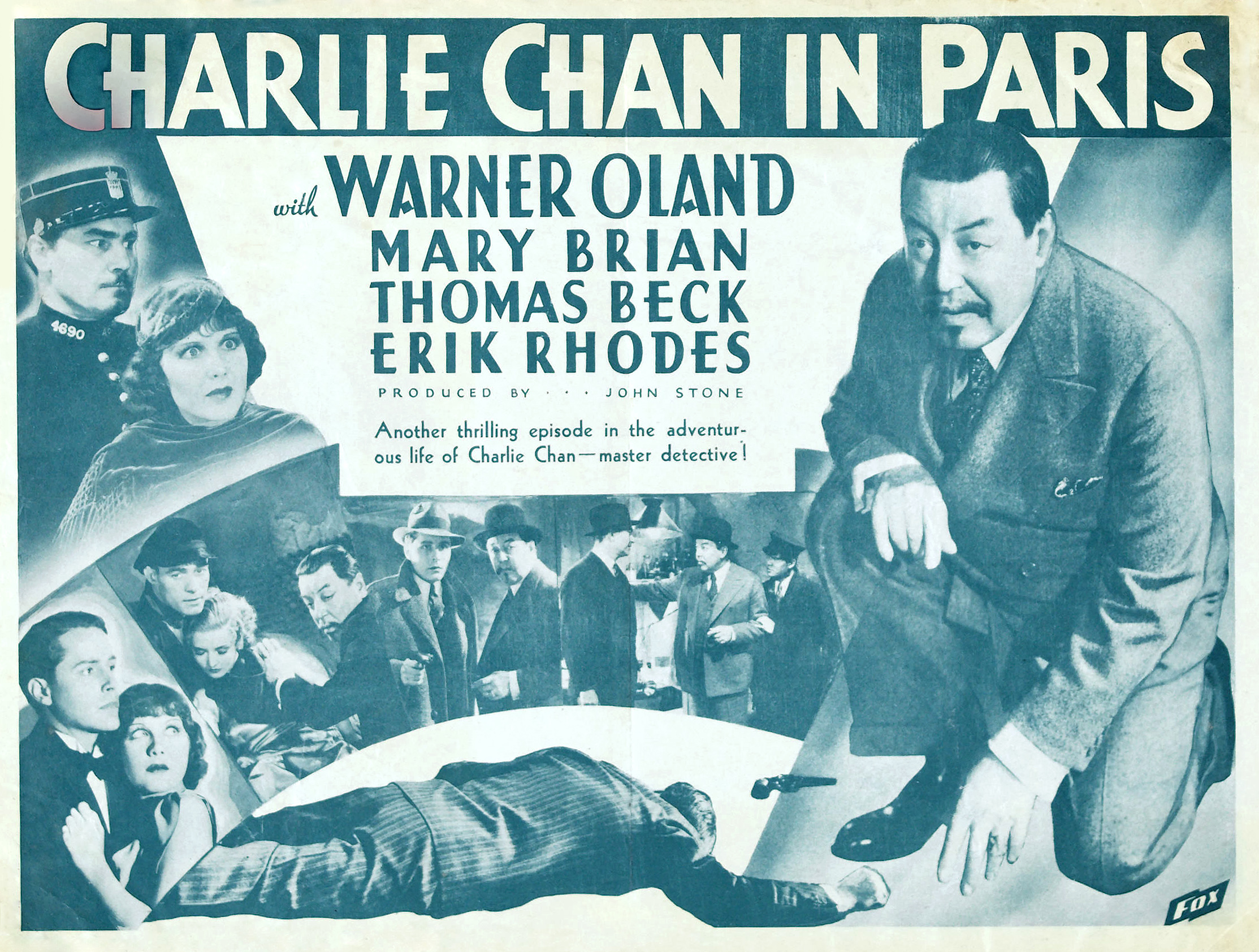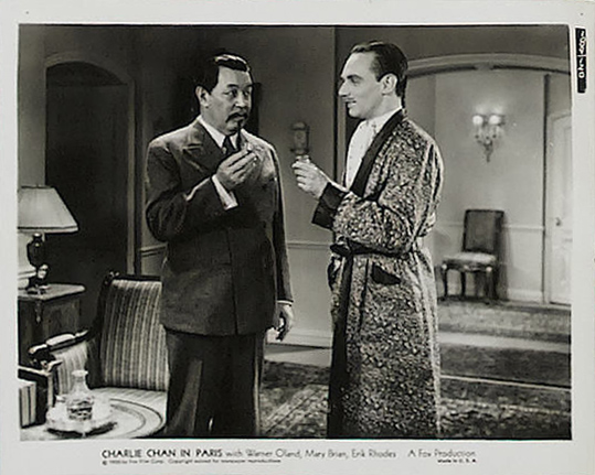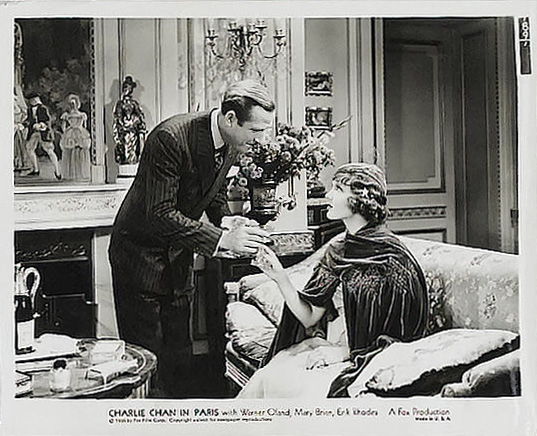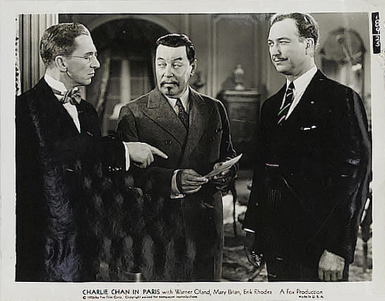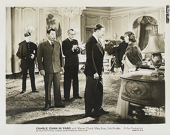 Fox Film Corp., 1935.  Directed by Lewis Seiler.  Camera:  Ernest Palmer.   With Warner Oland, Mary Brian, Thomas Beck, Erik Rhodes, John Miljan, Murray Kinnell, Minor Watson, John Qualen, Keye Luke, Henry Kolker, Dorothy Appleby, Ruth Peterson, Perry Ivins, George Davis, Auguste Tollaire, Louis Natheaux, Ed Cecil, Robert Graves, Harry Cording, Marty Faust, Landers Stevens, John Dilson, Samuel T. Godfrey, Rolfe Sedan, Moore & Allen, Gino Corrado, Wilfred Lucas, Richard Kipling, Eddie Vitch, Paul McVey, Gloria Roy.