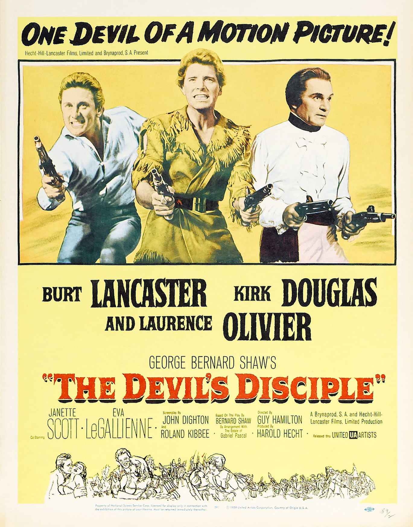 United Artists, 1959.  Directed by Guy Hamilton.  Camera:  Jack Hildyard.  With Burt Lancaster, Kirk Douglas, Laurence Olivier, Janette Scott, Eva LeGallienne, Harry Andrews, Basil Sydney, George Rose, Neil McCallum, Mervyn Johns, David Horne, Erik Chitty, Allan Cuthbertson, Percy Herbert, Phyllis Morris, Brian Oulton, Jenny Jones.