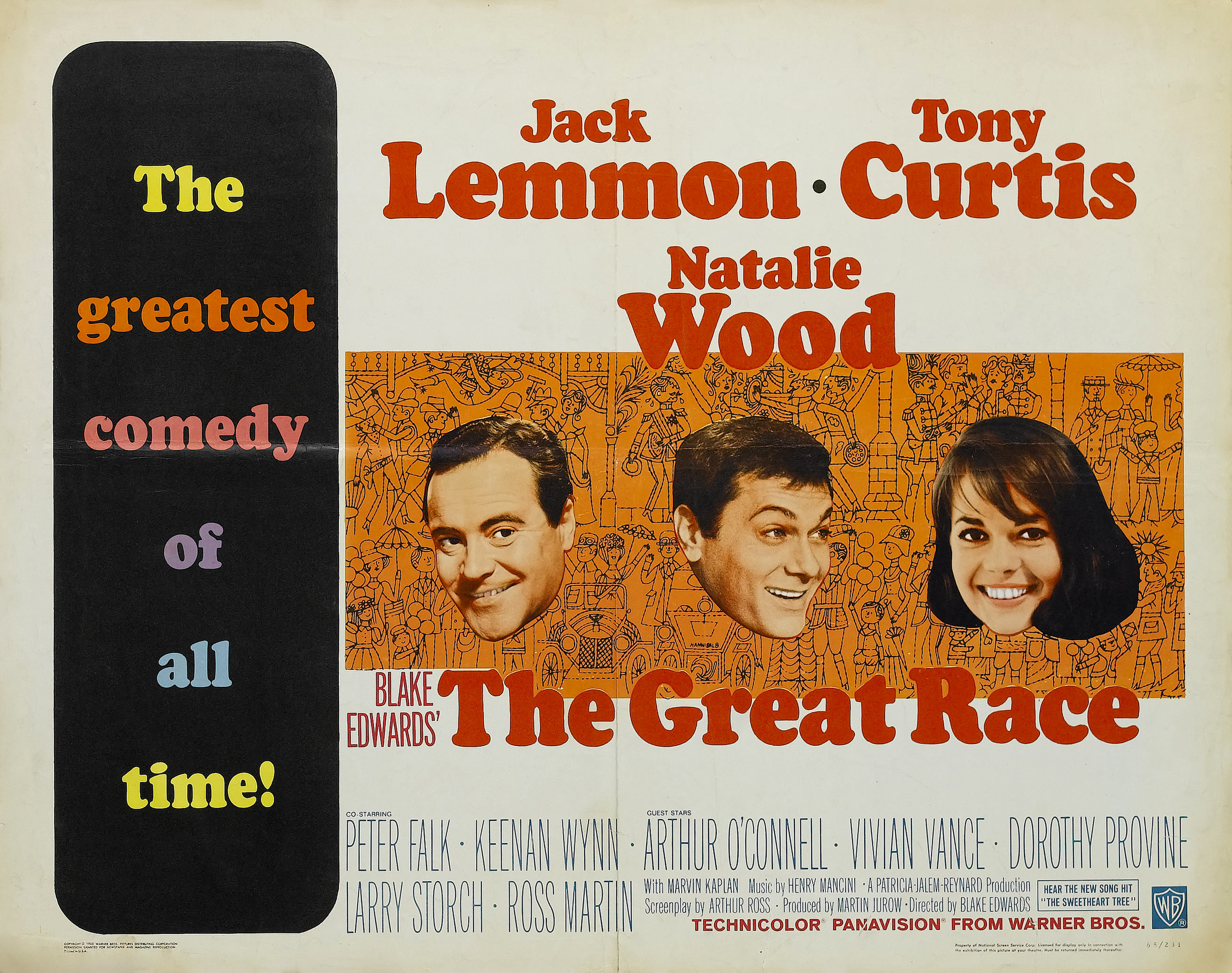 Warner Bros., 1965.  Directed by Blake Edwards.  Camera:  Russell Harlan.  With Jack Lemmon, Tony Curtis, Natalie Wood, Peter Falk, Keenan Wynn, Arthur O'Connell, Vivian Vance, Dorothy Provine, Larry Storch, George Macready, Ross Martin, Marvin Kaplan, Hal Smith, Denver Pyle, William Bryant, Ken Wales, J. Edward McKinley, Robert S. Carson, Paul Smith, Frank Kreigh, Charles Fredericks, Clegg Hoyt.