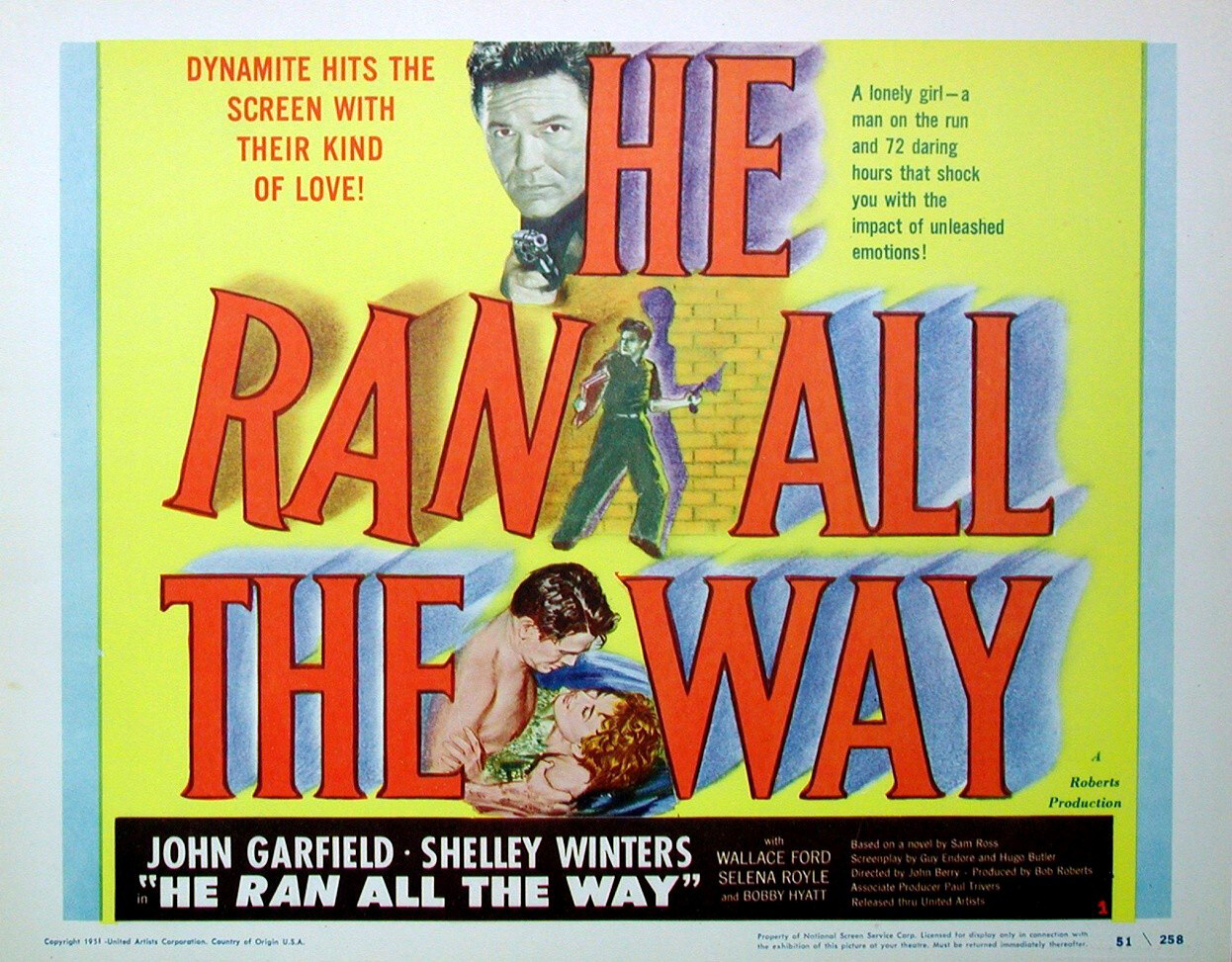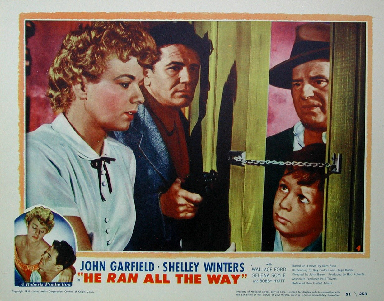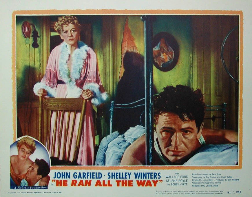 United Artists, 1951.  Directed by John Berry.  Camera:  James Wong Howe.  With John Garfield, Shelley Winters, Wallace Ford, Selena Royle, Gladys George, Norman Lloyd, Bobby Hyatt, Clancy Cooper, Vici Raaf, Keith Hetherington, Robert Karn, Renny McEvoy, Dale Van Sickle, Cameron Grant, James Magill, Robert Davis, John Morgan, Ralph Brooks, Jimmy Ames, Mark Lowell, Lucille Sewall.