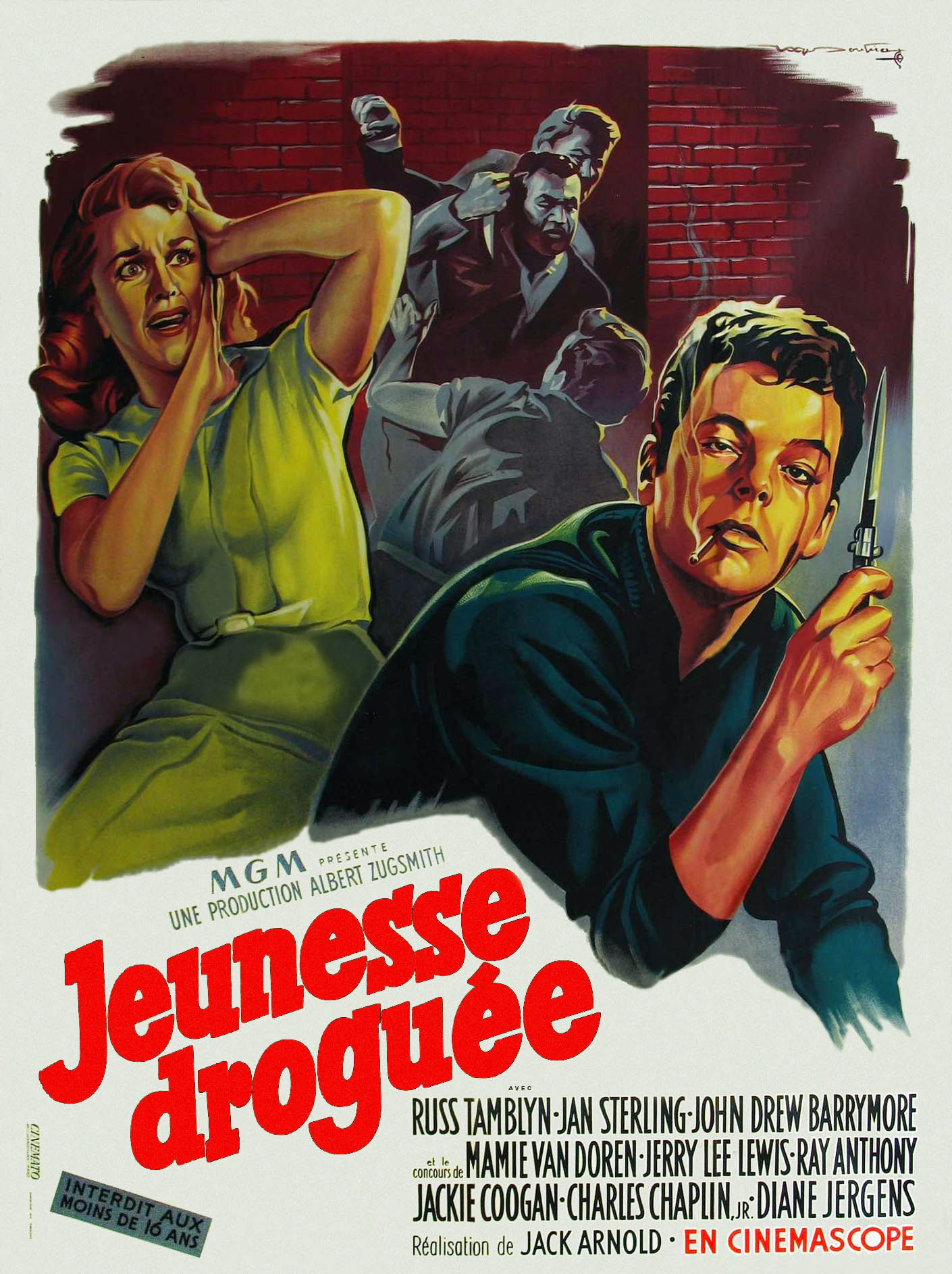 MGM, 1958.  Directed by Jack Arnold.  Camera:  Harold J. Marzorati.  With Russ Tamblyn, Jan Sterling, John Drew Barrymore, Mamie Van Doren, Diane Jergens, Jerry Lee Lewis, Ray Anthony, Jackie Coogan, Charles Chaplin, Jr., Burt Douglas, Jody Fair, Phillipa Fallon, Robin Raymond, James Todd, Lyle Talbot, William Wellman, Jr., Texas Joe Foster, Diana Darrin, Carl Thayler, Irwin Berke, Michael Landon, Mel Welles, Charles Halton, Helen Kleeb, Ned Wever, Florida Friebus, Carmen Phillips.