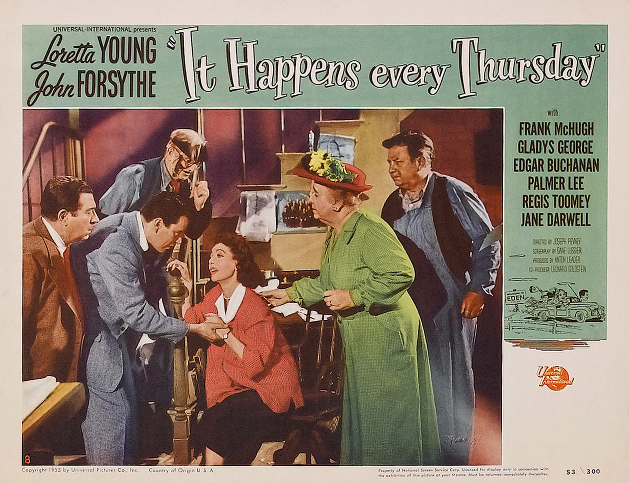 John Forsythe, Frank McHugh, Edgar Buchanan, Palmer Lee, Harvey Grant, Jane