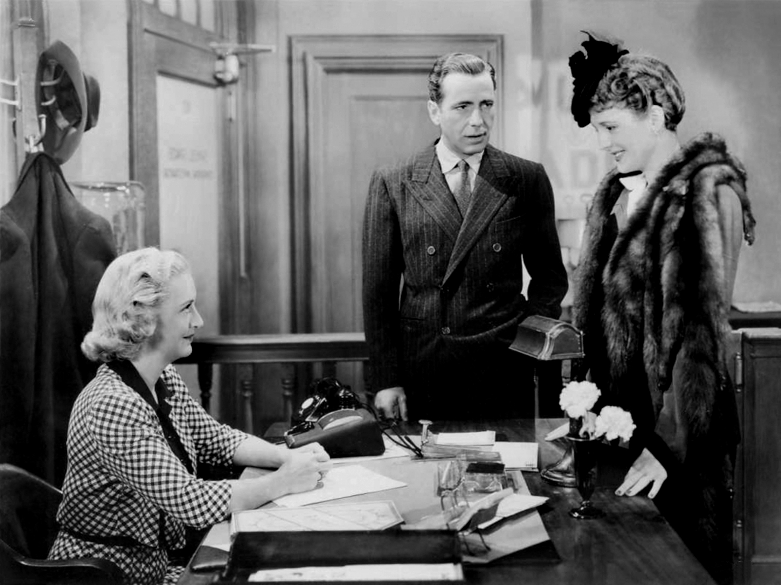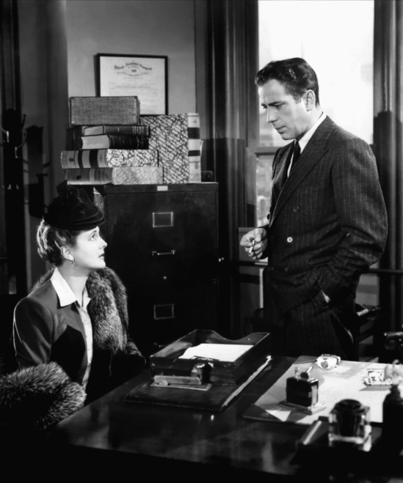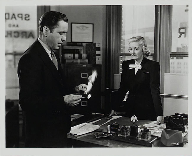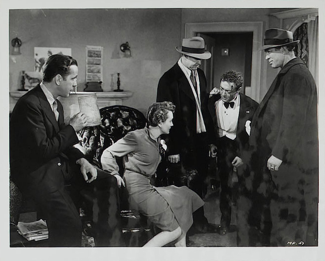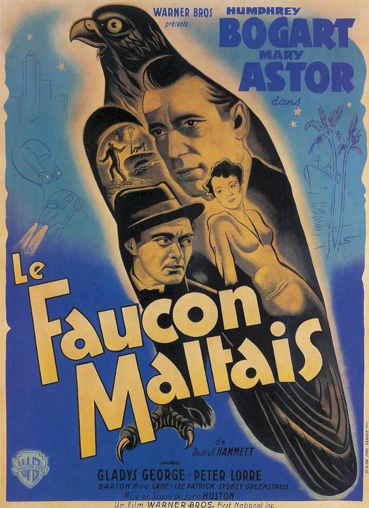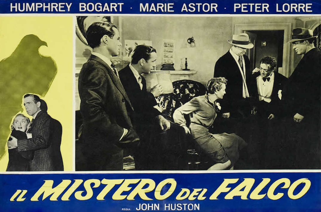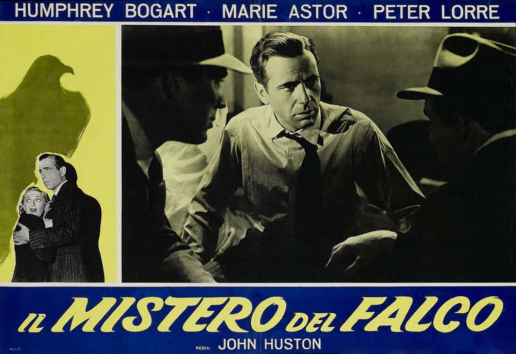 Warner Bros., 1941.  Directed by John Huston.  Camera:  Arthur Edeson.  With Humphrey Bogart, Mary Astor, Sidney Greenstreet, Peter Lorre, Elisha Cook, Jr., Gladys George, Barton MacLane, Lee Patrick, Ward Bond, Jerome Cowan, Creighton Hale, William Hopper, Hank Mann.