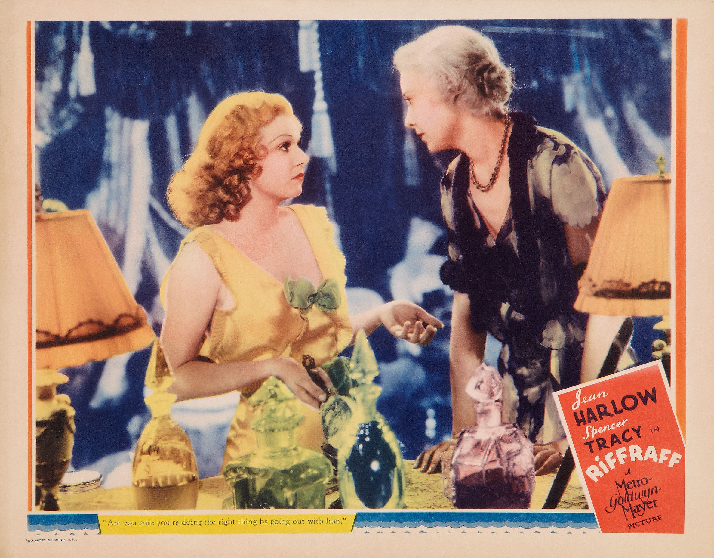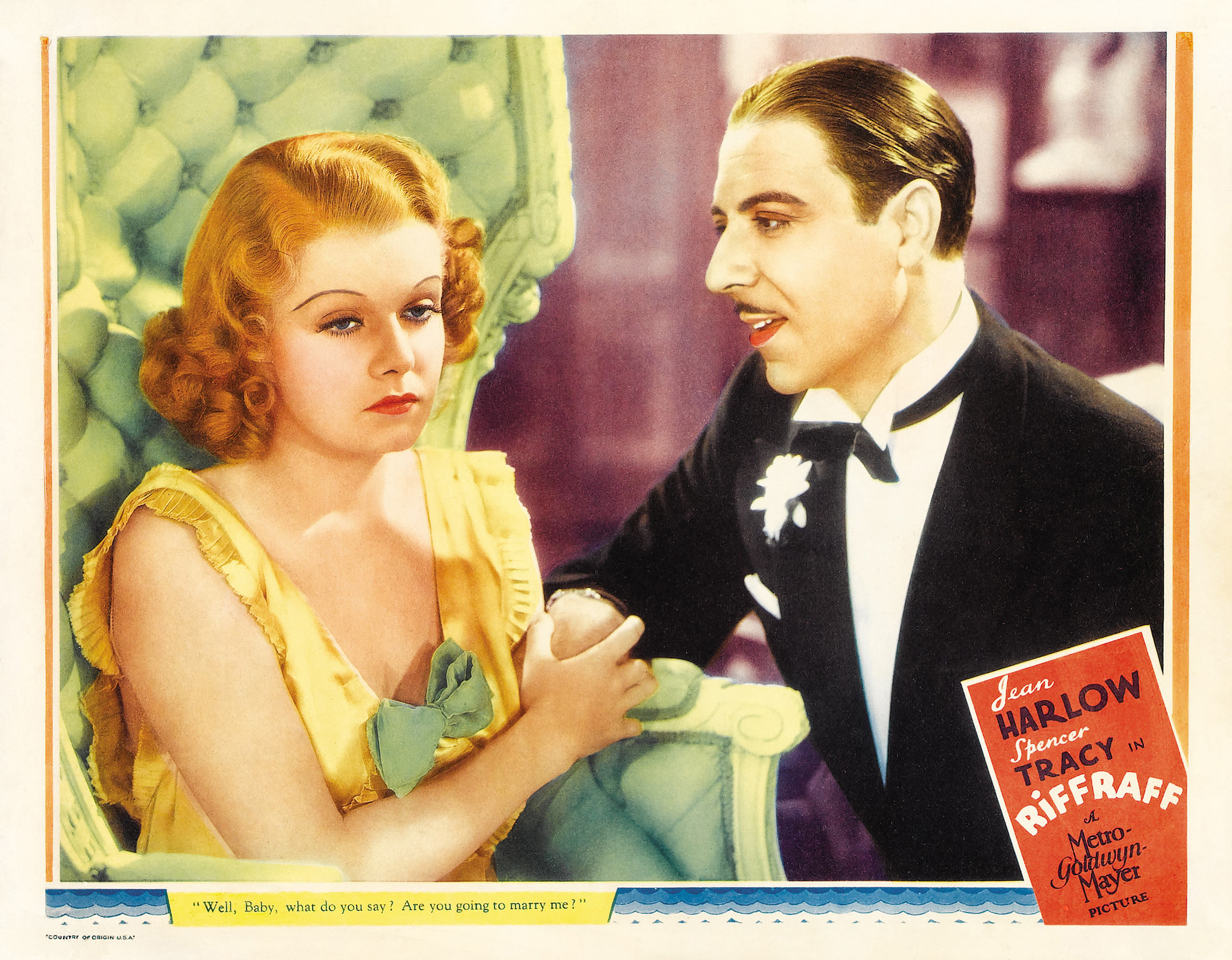 MGM, 1936.  Directed by J. Walter Ruben.  Camera:  Ray June.  With Spencer Tracy, Jean Harlow, Una Merkel, Joseph Calleia, Victor Killian, Mickey Rooney, J. Farrell MacDonald, Roger Imhof, Juanita Quigley, Paul Hurst, Vince Barnett, Dorothy Appleby, Judith Wood, Arthur Houseman, Wade Boteler, Joe Phillips, William Newell, Al Hill, Helen Flint, Lillian Harmer, Bob Perry, George Givot, Helene Costello.