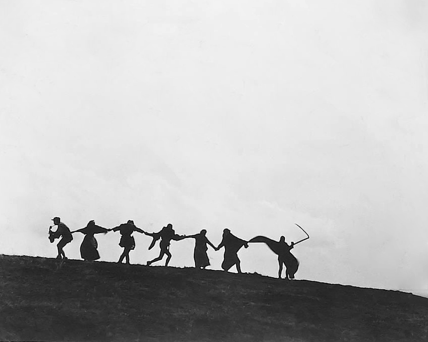 The film opens and closes with the passage from Revelation from which it takes its title: "When he broke open the seventh seal, there was silence in heaven for about half an hour" (Rev 8:1). "Silence in heaven"—or rather the silence of heaven, the silence of God in the world—is Bergman’s ambitious theme, along with mortality and death, existential dread, and apocalyptic fears.