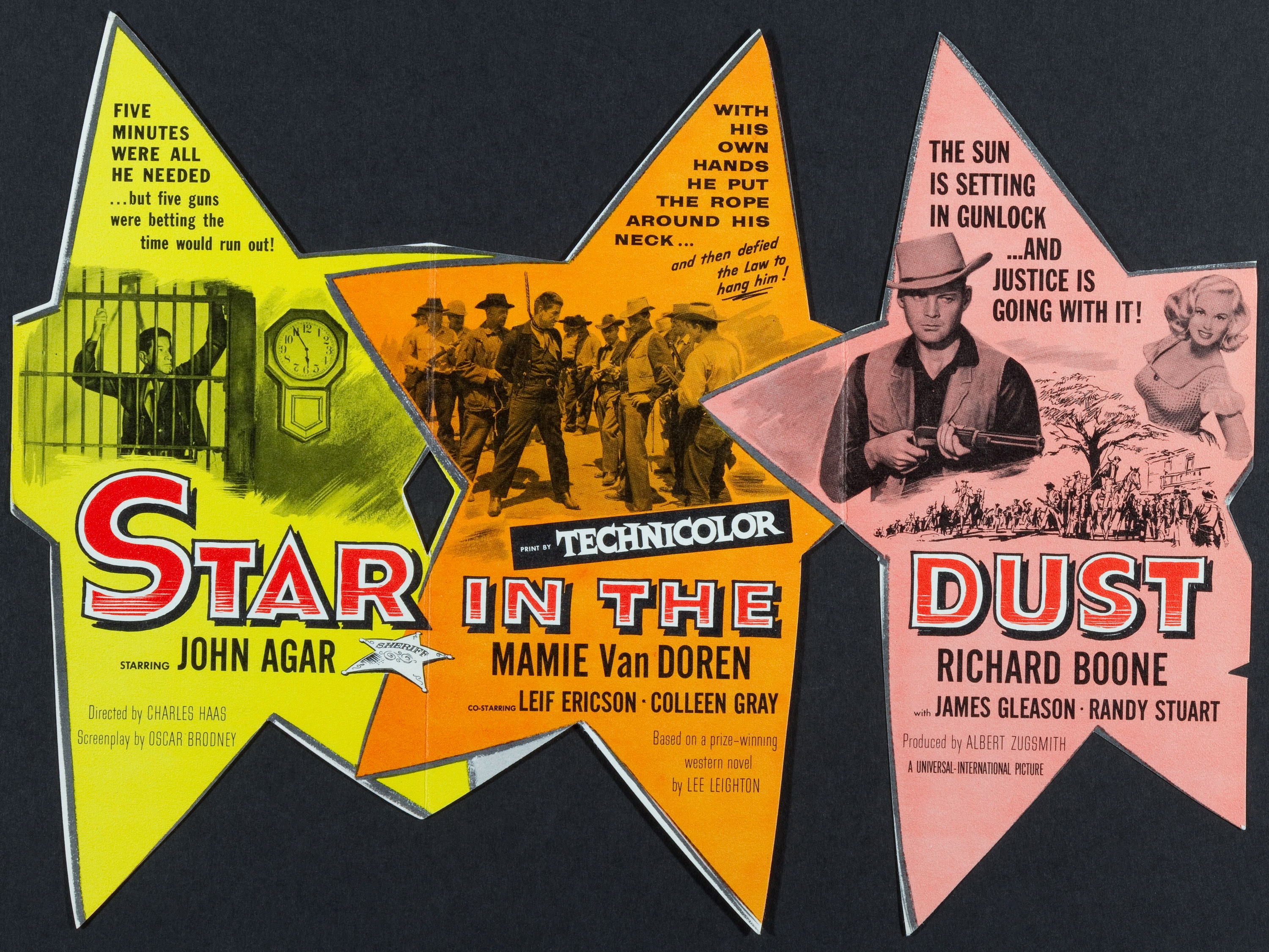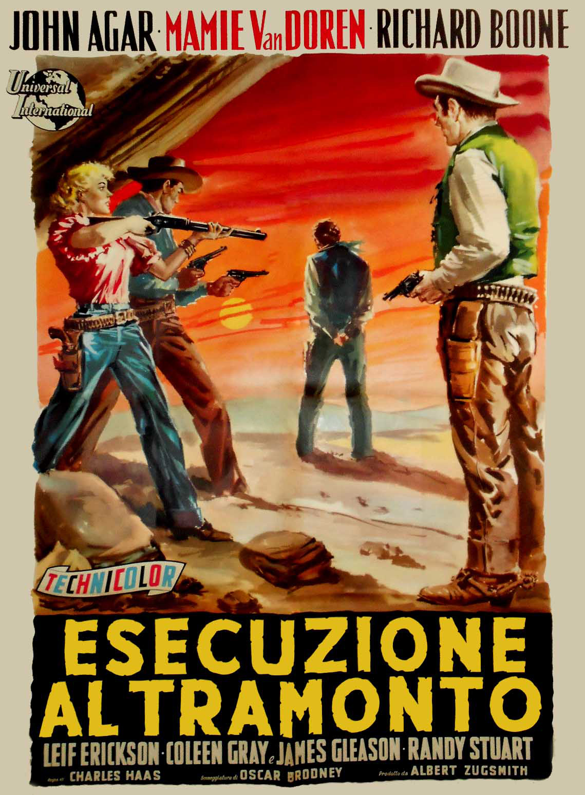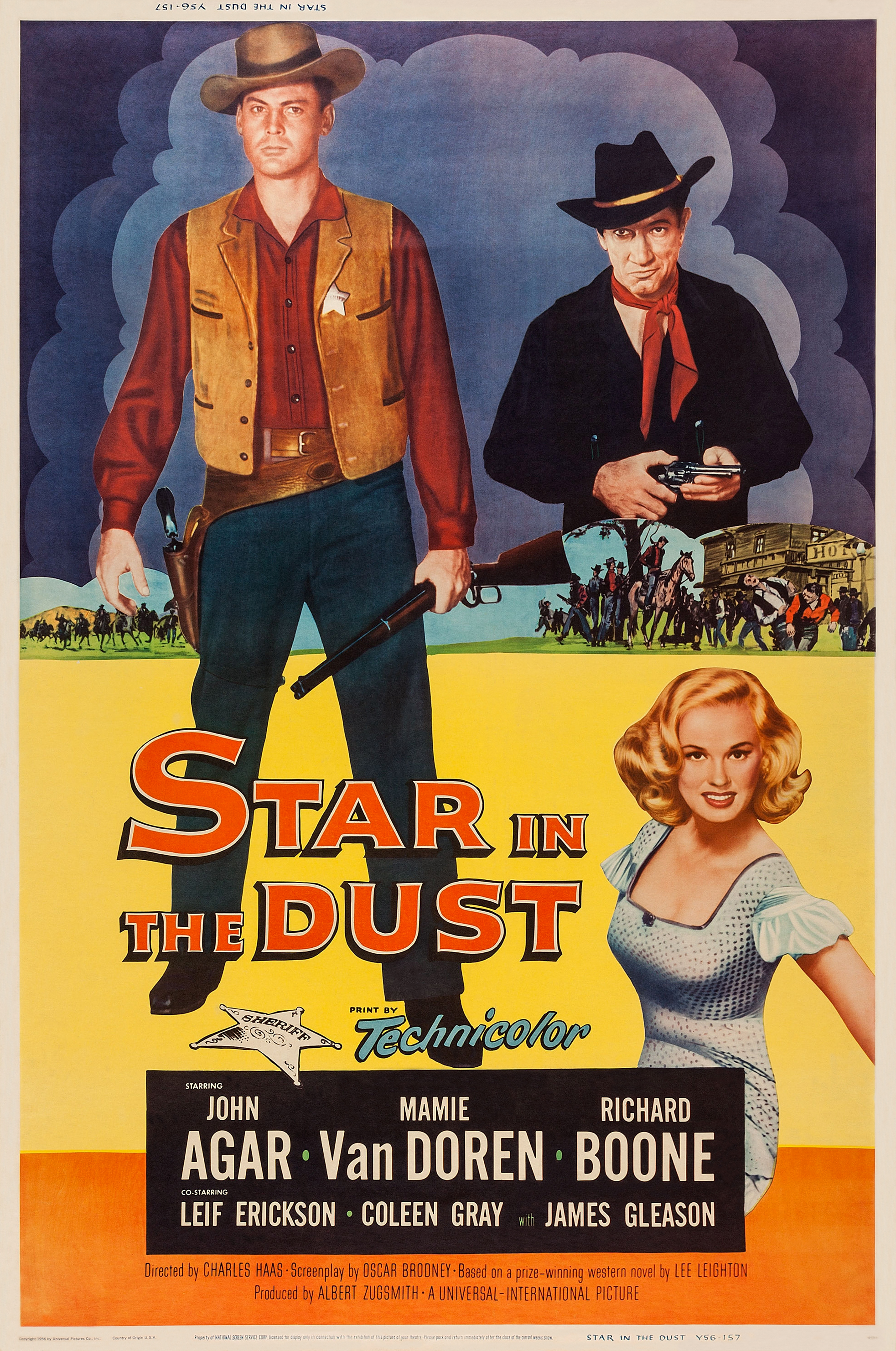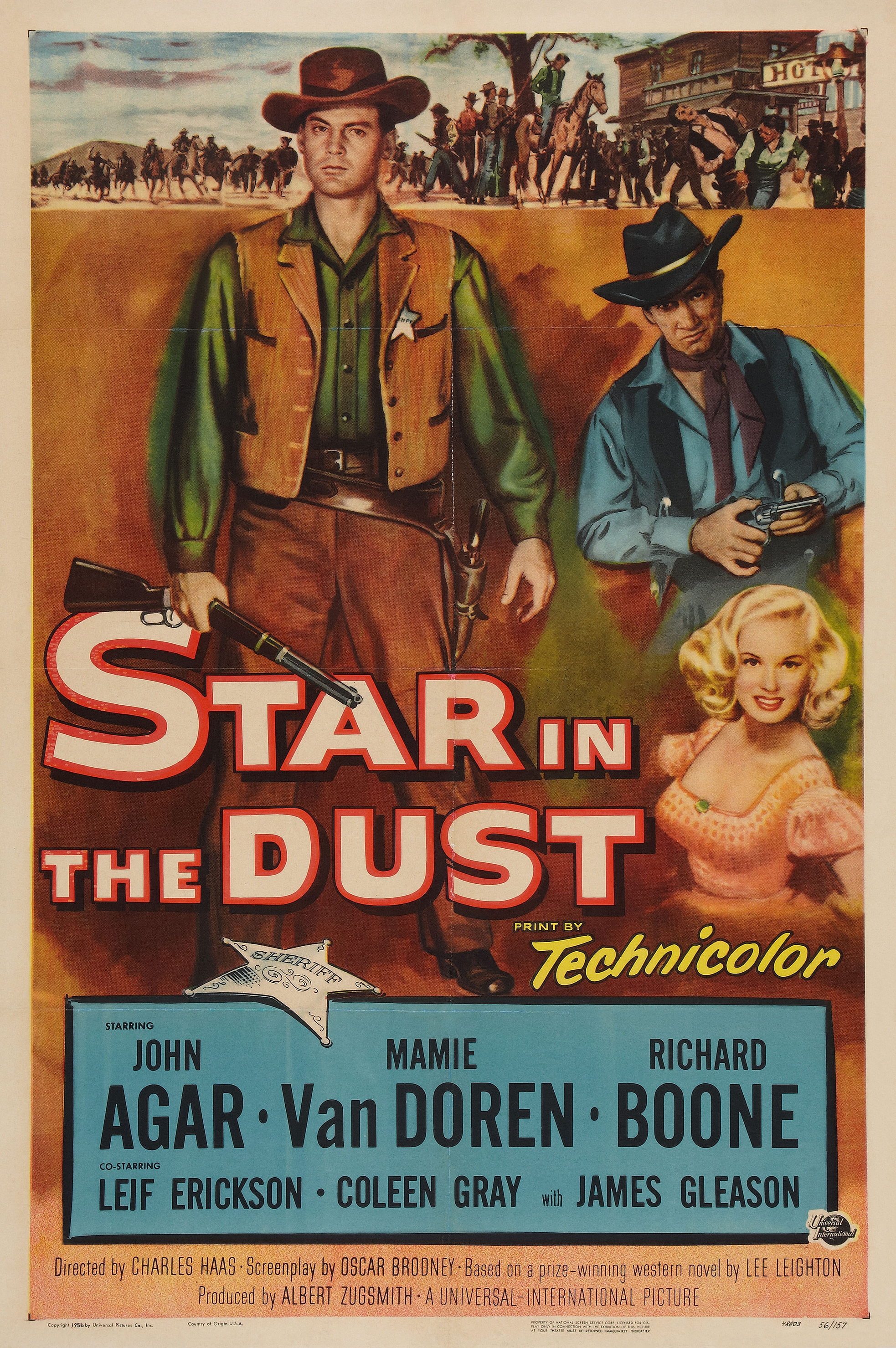 Universal, 1956.  Directed by Charles Haas.  Camera:  John L. Russell, Jr.  With John Agar, Mamie Van Doren, Richard Boone, Coleen Gray, Leif Erickson, James Gleason, Randy Stuart, Terry Gilkyson, Paul Fix, Harry Morgan, Stuart Randall, Robert Osterloh, Stanley Andrews, John Day, Stafford Repp, Lewis Martin, Renny McEvoy, Jesse Kirkpatrick, James Parnell, Clint Eastwood.