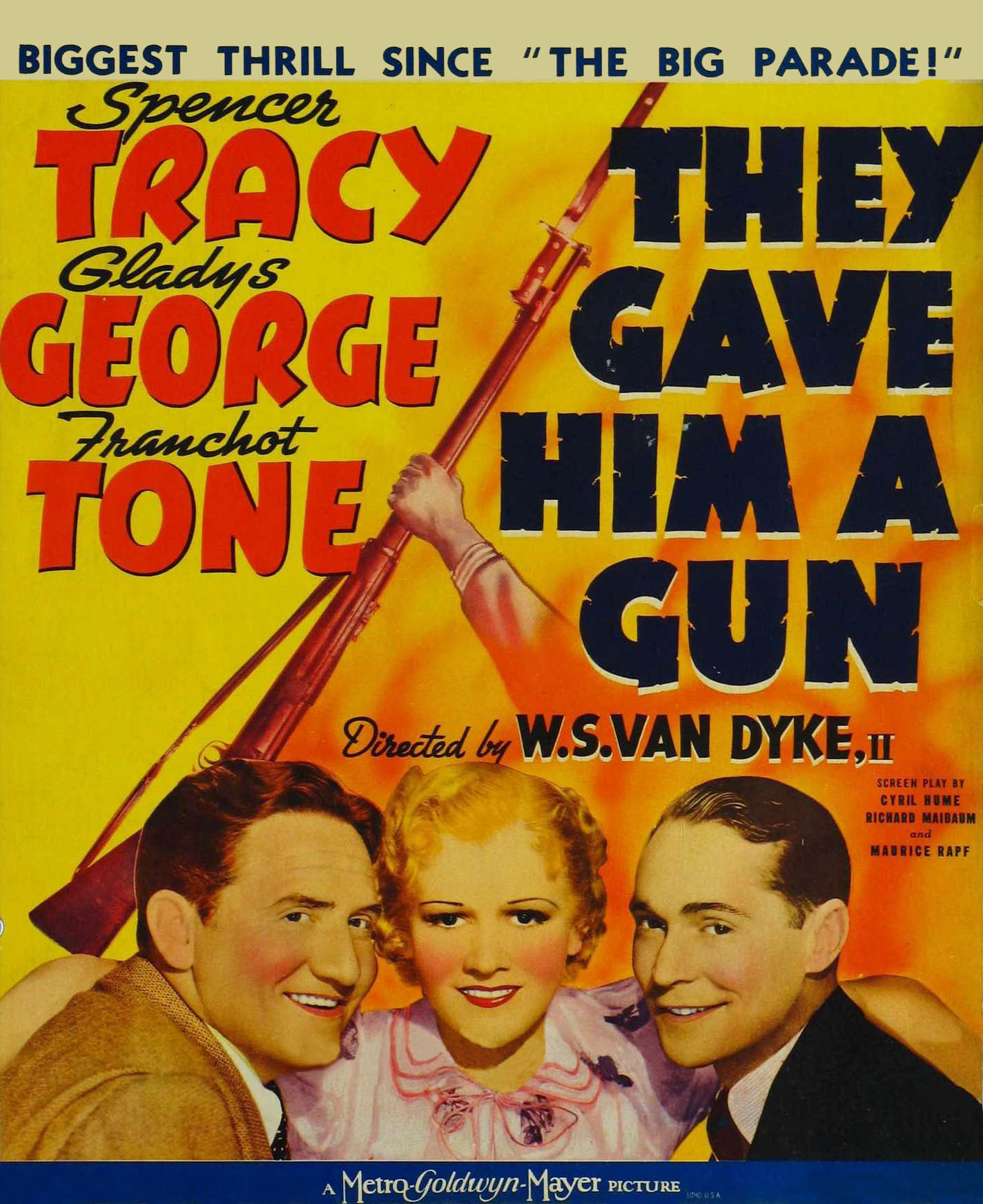 MGM, 1937.  Directed by W.S.  Van Dyke.  Camera:  Harold Rosson.  With Spencer Tracy, Gladys George, Franchot Tone, Edgar Deering, Mary Lou Treen, Cliff Edwards, Charles Trowbridge, Joseph Sawyer, George Chandler, Horace McMahon, Gavin Gordon, Ernest Whitman, Nita Pike, Joan Woodbury, Jack Murphy, Edgar Edwards, Mary Jane Irving, Frank Sully, Jack Tarnek, Albert D'Arno.