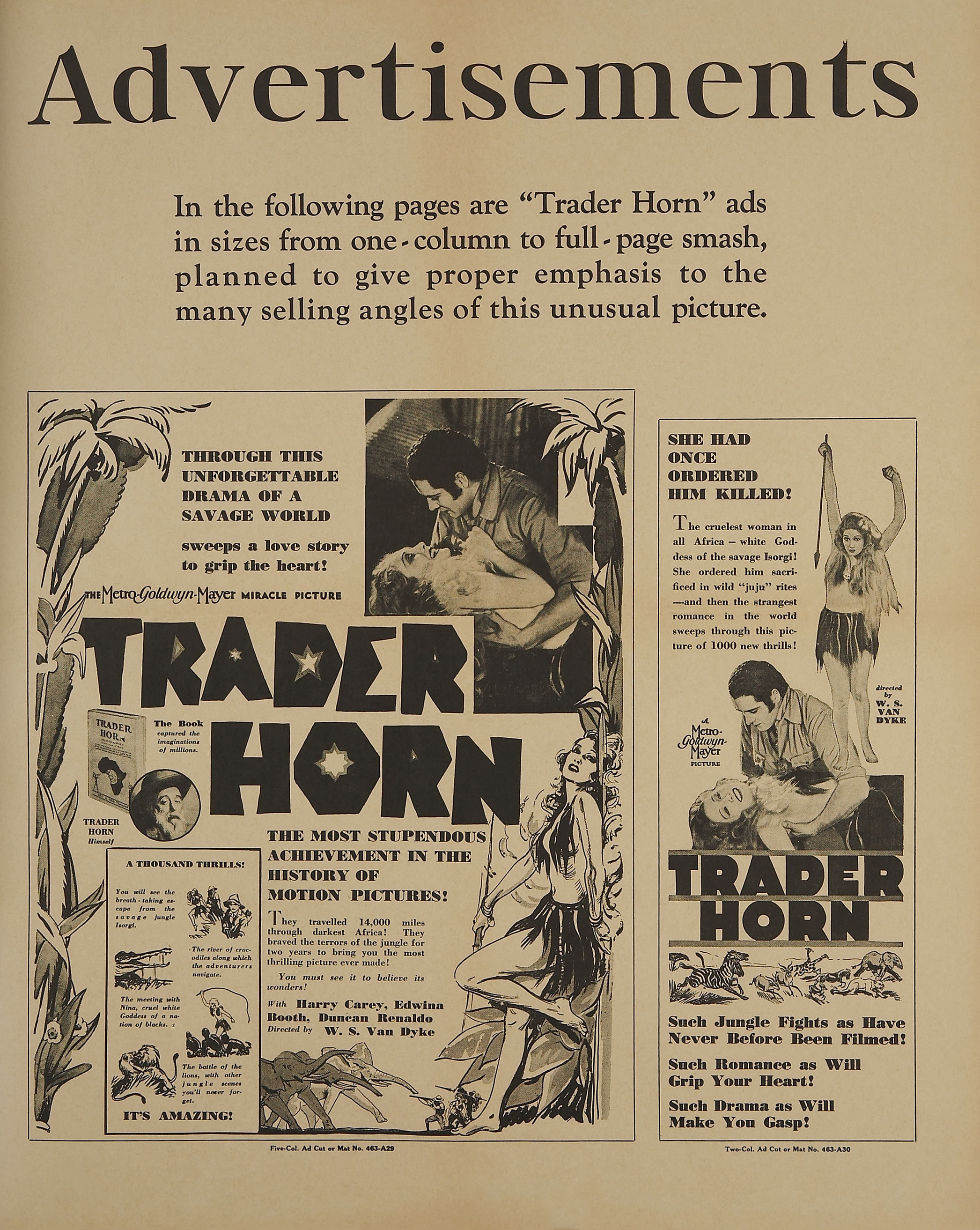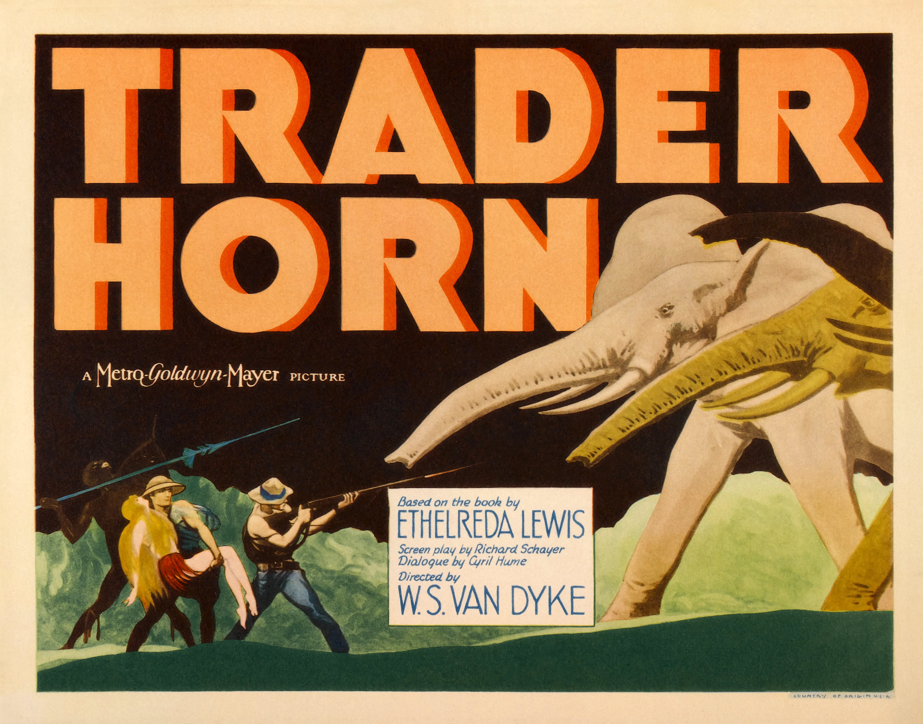MGM, 1931.  Directed by W.S. Van Dyke II.  Camera:  Clyde De Vinna.  With Harry Carey, Sr., Edwina Booth, Duncan Renaldo, Mutia Omoolu, Olive Golden, Riano Tindama.