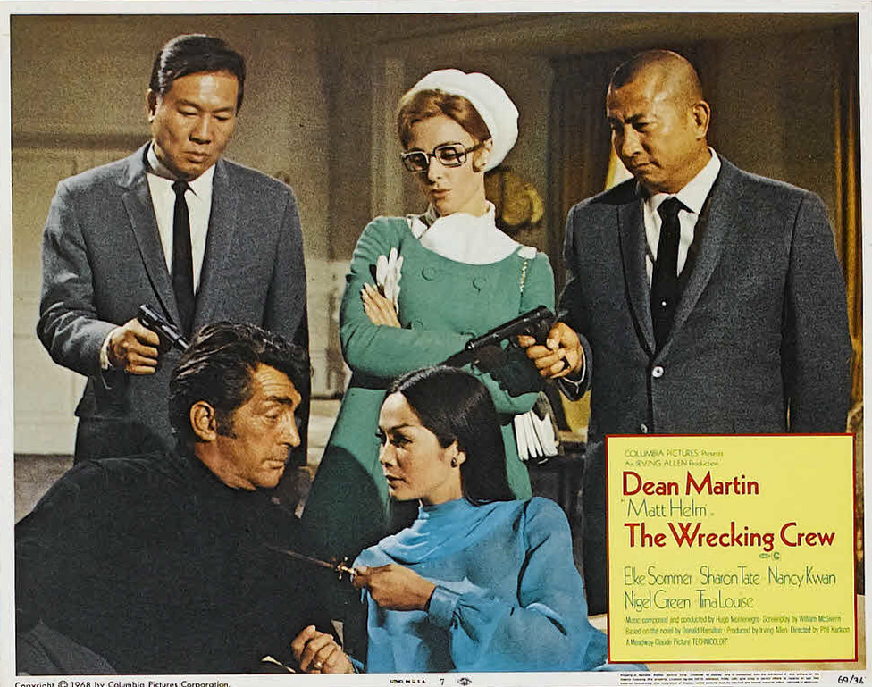 Columbia, 1969.  Directed by Phil Karlson.  Camera:  Sam Leavitt.  With Dean Martin, Elke Sommer, Sharon Tate, Nancy Kwan, Nigel Green, Tina Louise, John Larch, John Brascia, Weaver Levy, Wilhelm von Homburg, Bill Saito, Fuji, Ted H. Jordan, Pepper Martin, Whitney Chase, Bill Ryusaki, Chuck Norris, David Chow, Jon Kowal, Allen Pinson, James Lloyd, James Daris, Tony Giorgio, Brick Huston.
