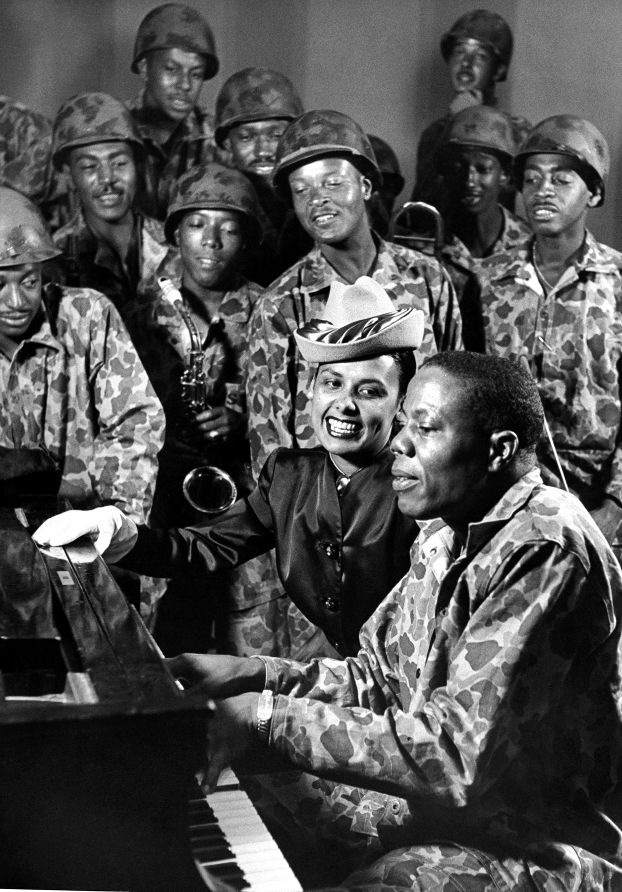 Louis Armstrong, Billie Holiday, and Barney Bigard performing in