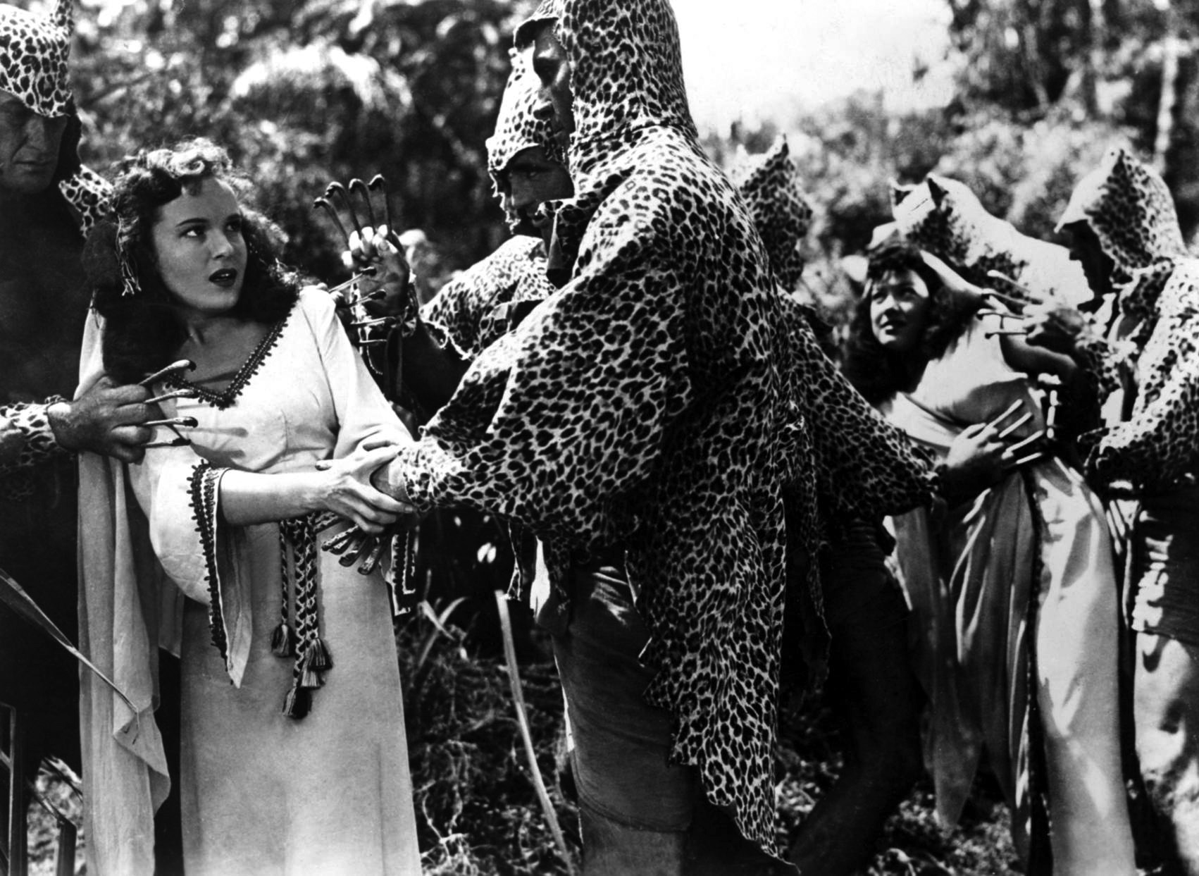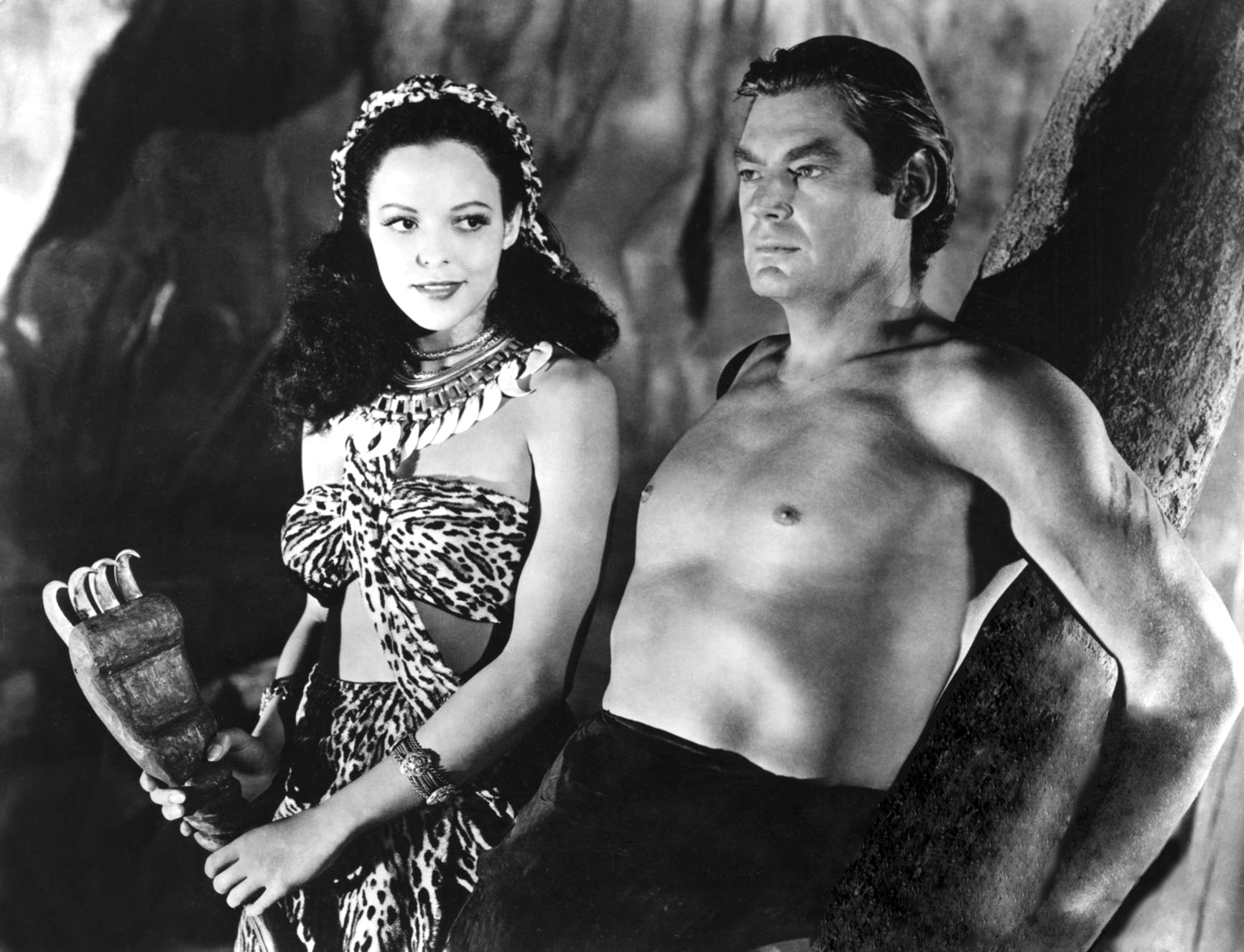 Next, it's time for more vine swinging with Tarzan and the Leopard Woman.  We have six photos featuring Johnny Weissmuller, Brenda Joyce, Johnny Sheffield, and Acquanetta (Va-Va-Voom!).  These images were provided by Rikke and Doug.