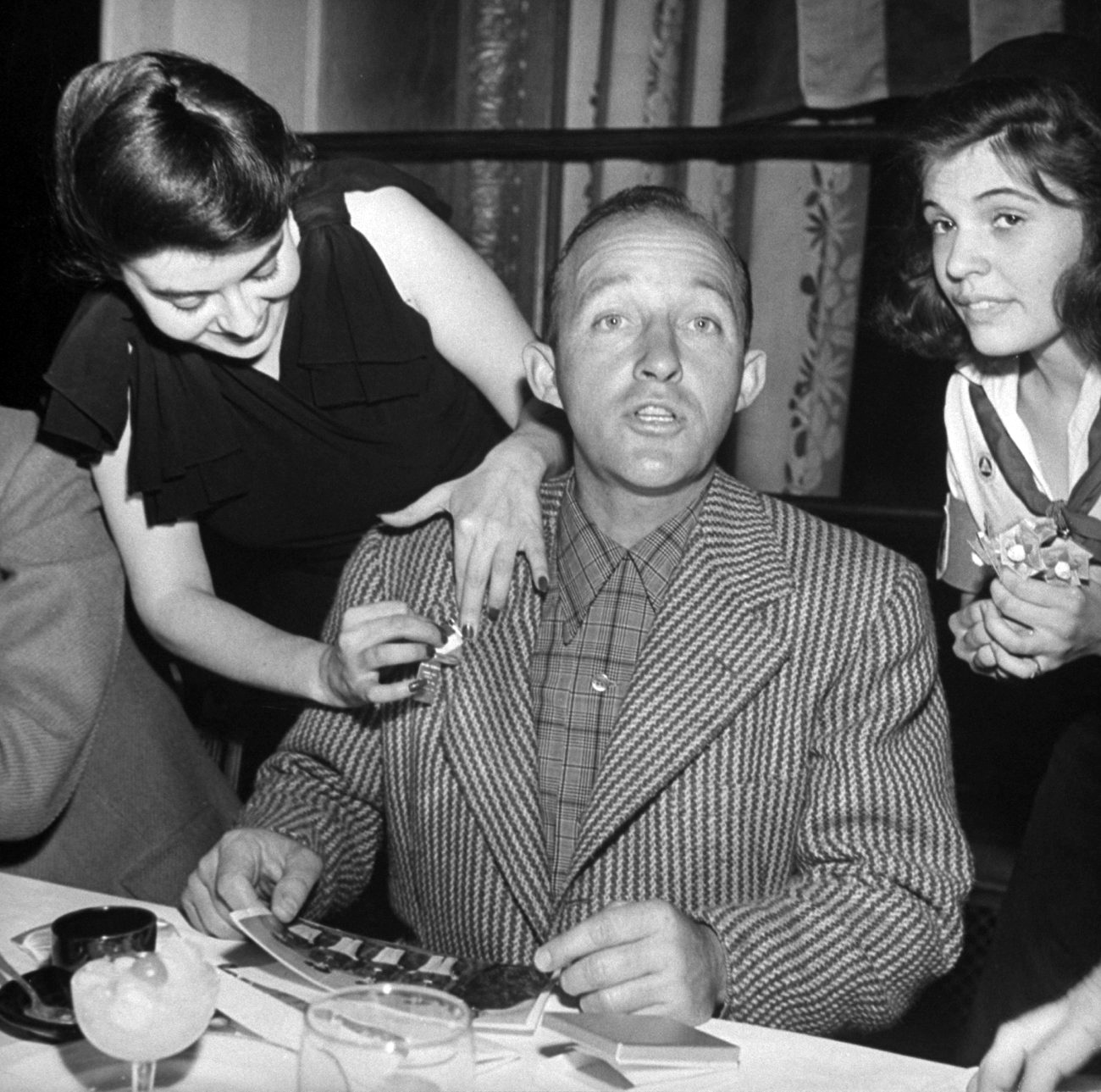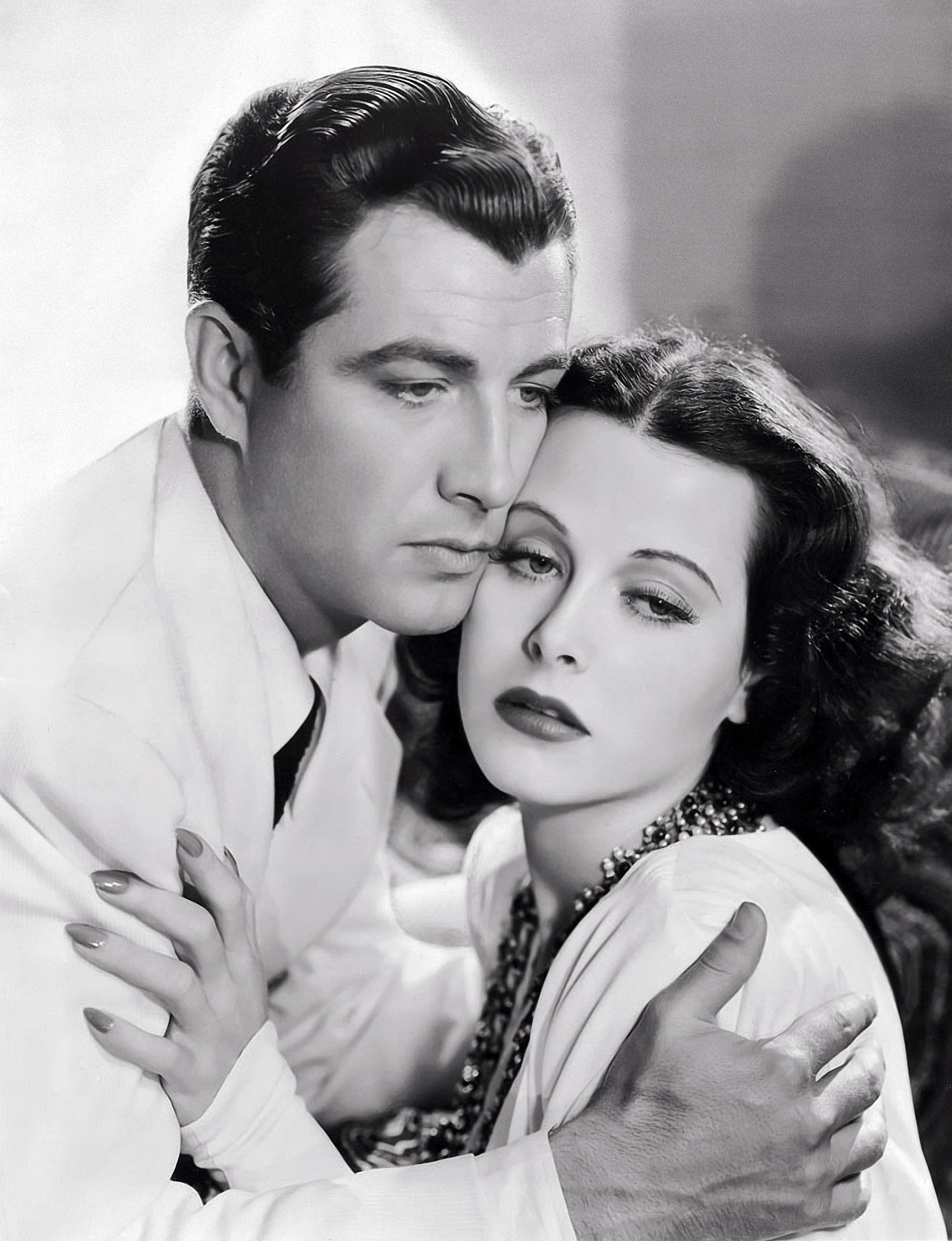 Jane Russell cozying up to her