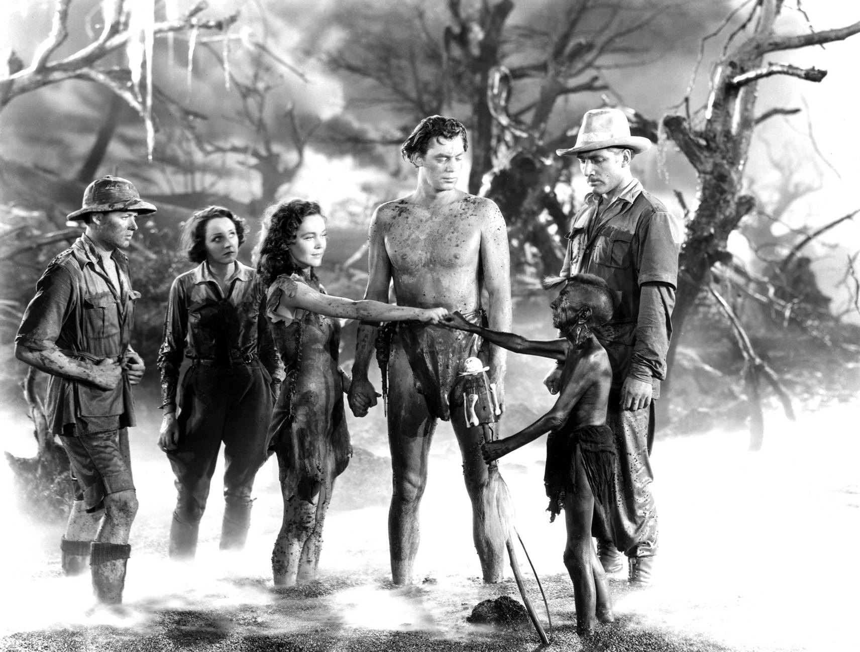 Doug found a nice still of Acquanetta about to inflict discomfort on Johnny Weissmuller in Tarzan and the Leopard Woman (1946).