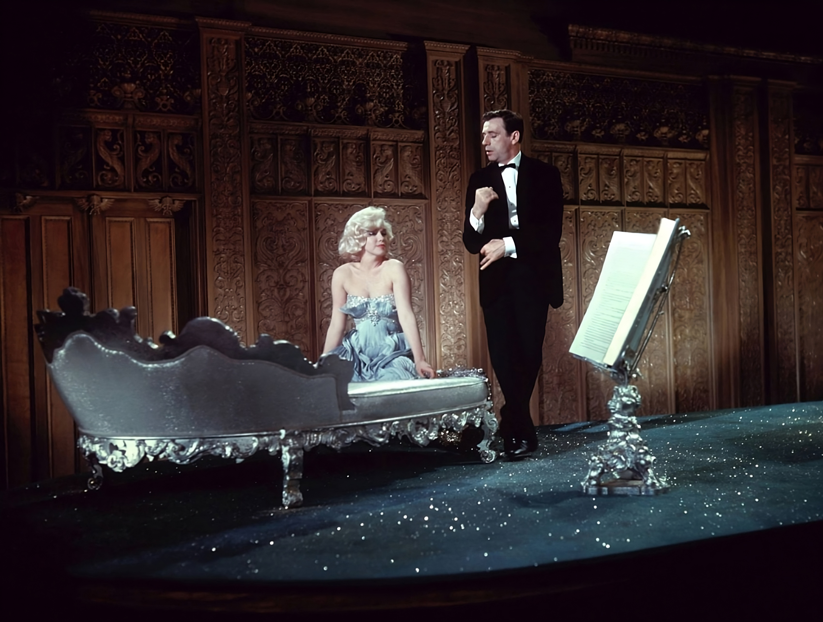 Jayne Mansfield who's looking for nylon stockings—and what better