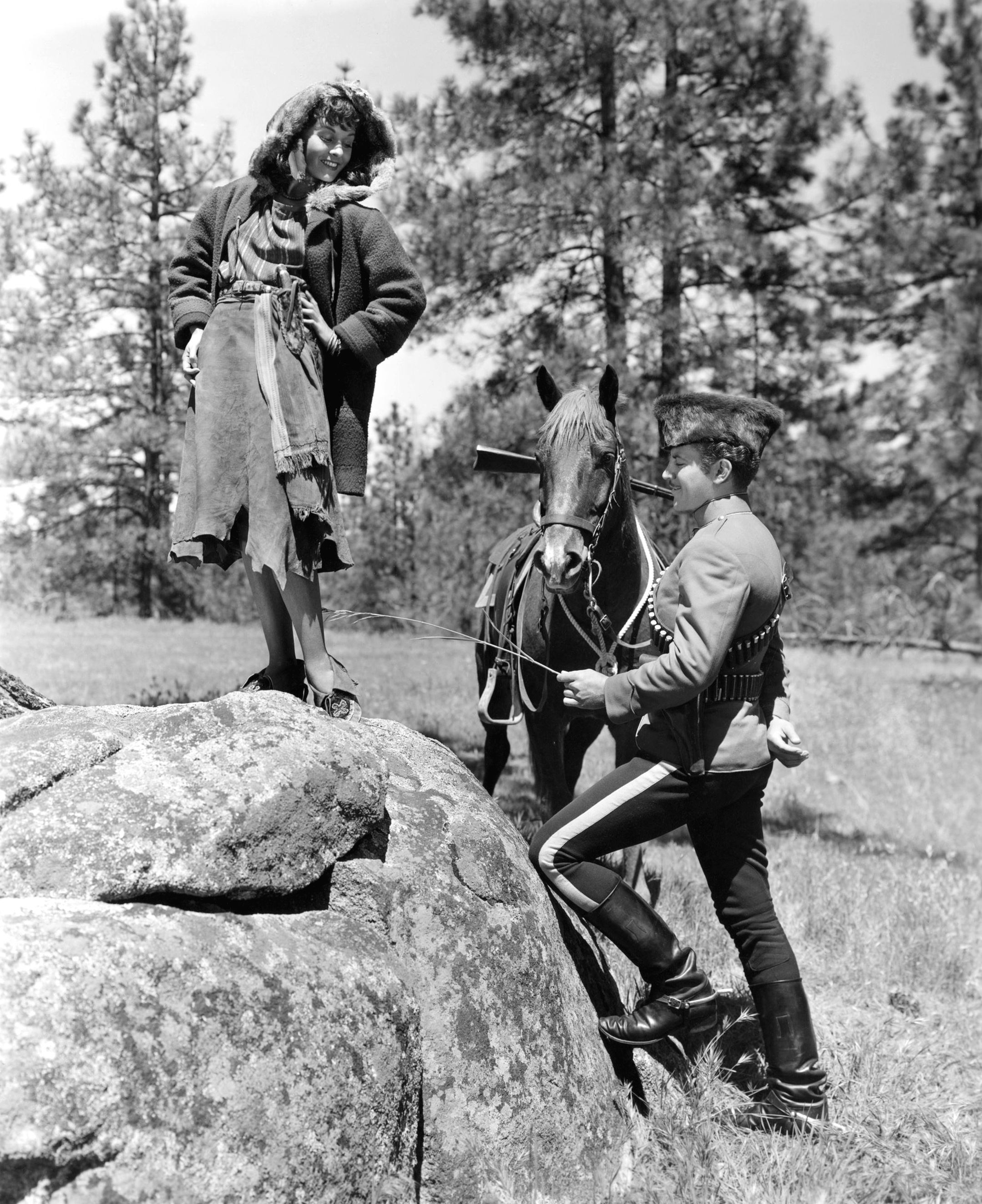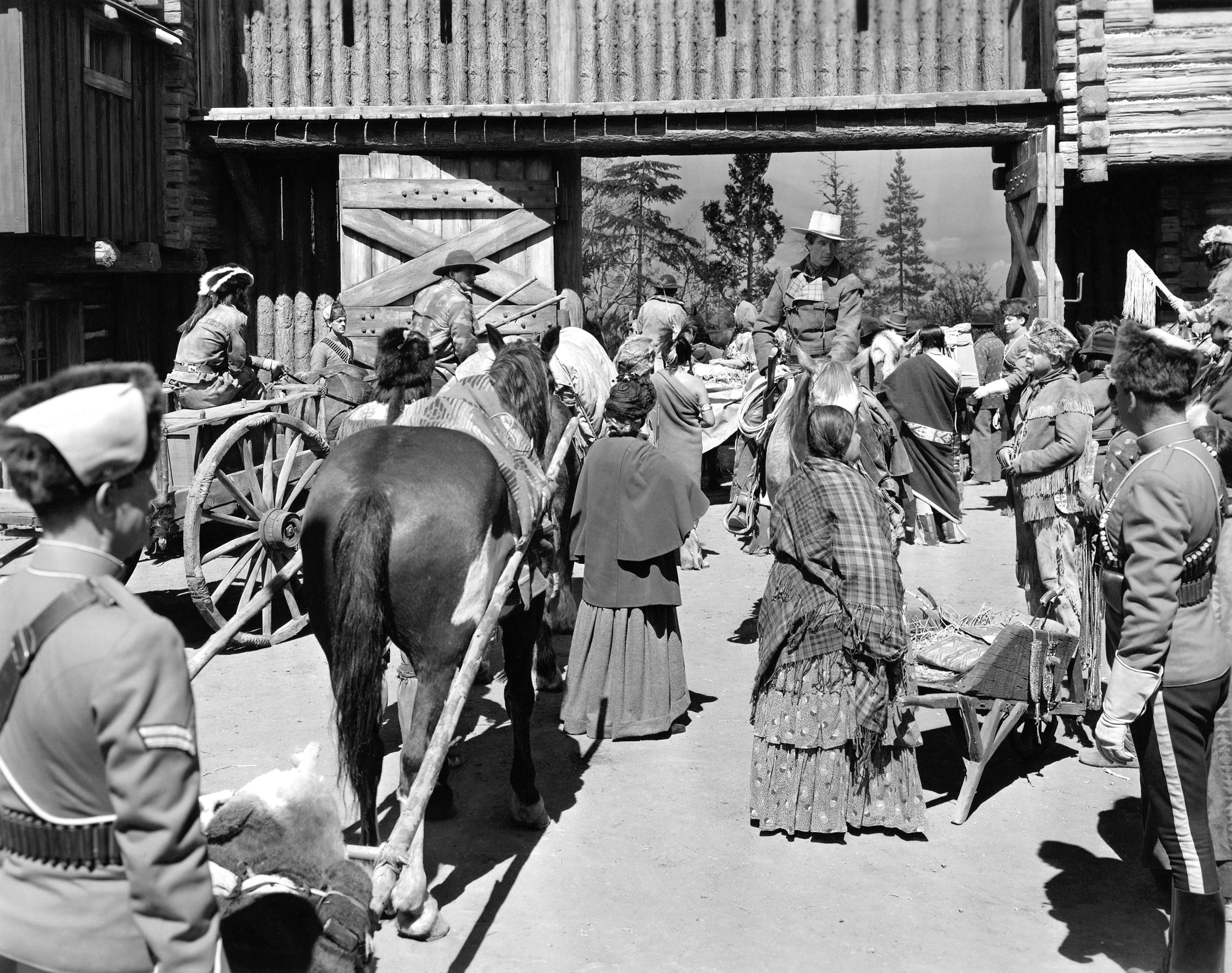 Madeleine Carroll in North West Mounted Police (1940), and a second photo from the same film with Gary Cooper, George Bancroft, and Lynne Overman(!)