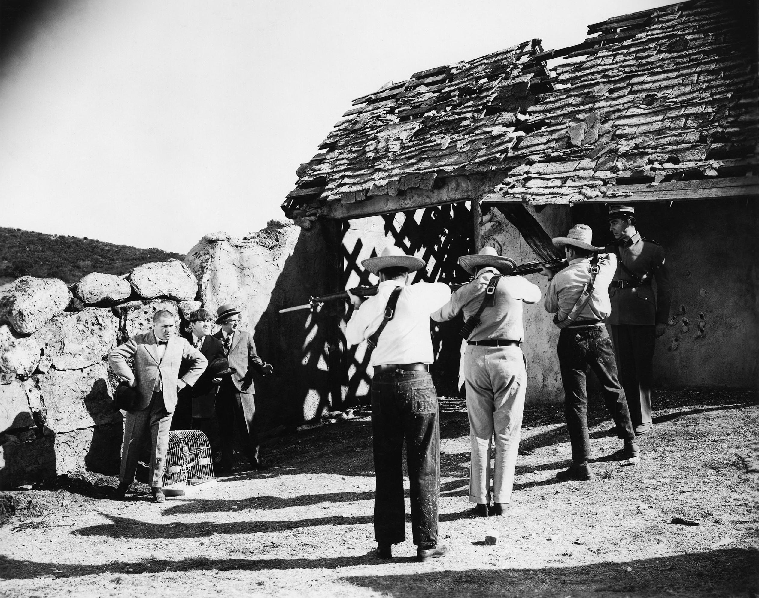 Next, Chris mounted a great effort to produce this picture of The Three Stooges in I'll Never Heil Again (1941), and followed up with a bonus "shot" of the trio in Saved by the Belle (1939).  Then we added a third image, from Dancing Lady (1933), with the Stooges' manager/handler Ted Healy.