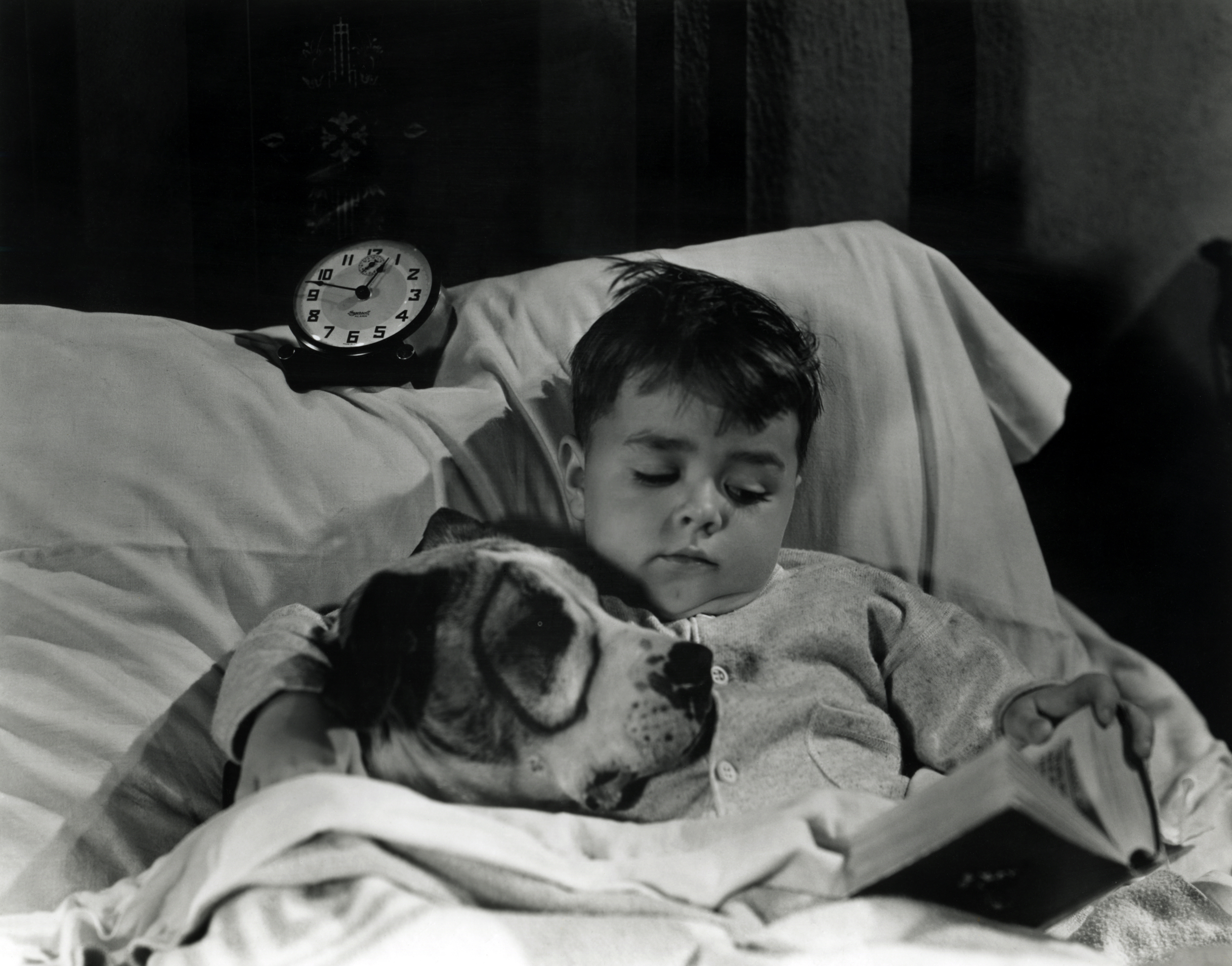 Spanky and Pete the Pup do a little reading before turning in for the night,