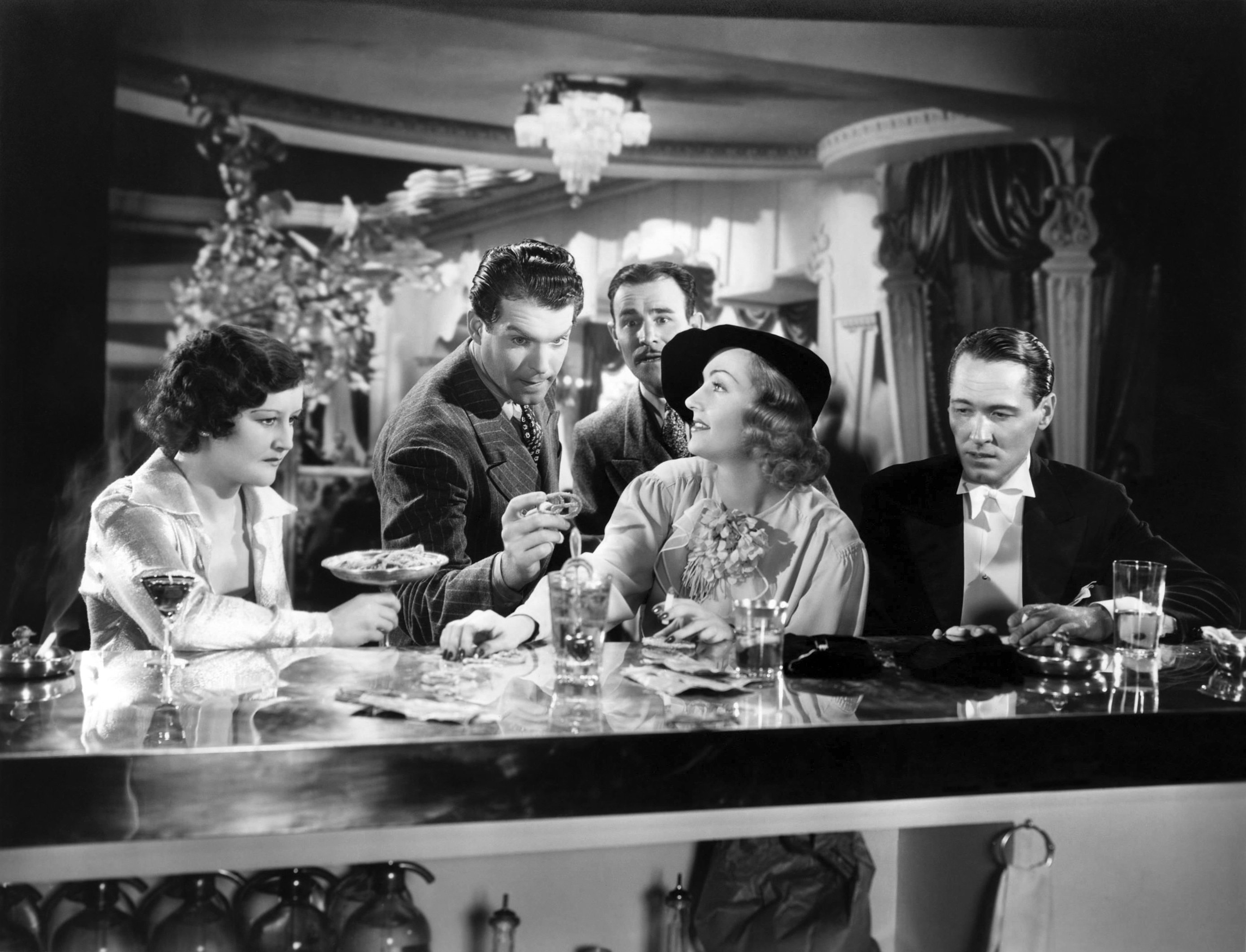 Fred MacMurray and Carole Lombard toss back a few in Hands Across the Table (1935).
