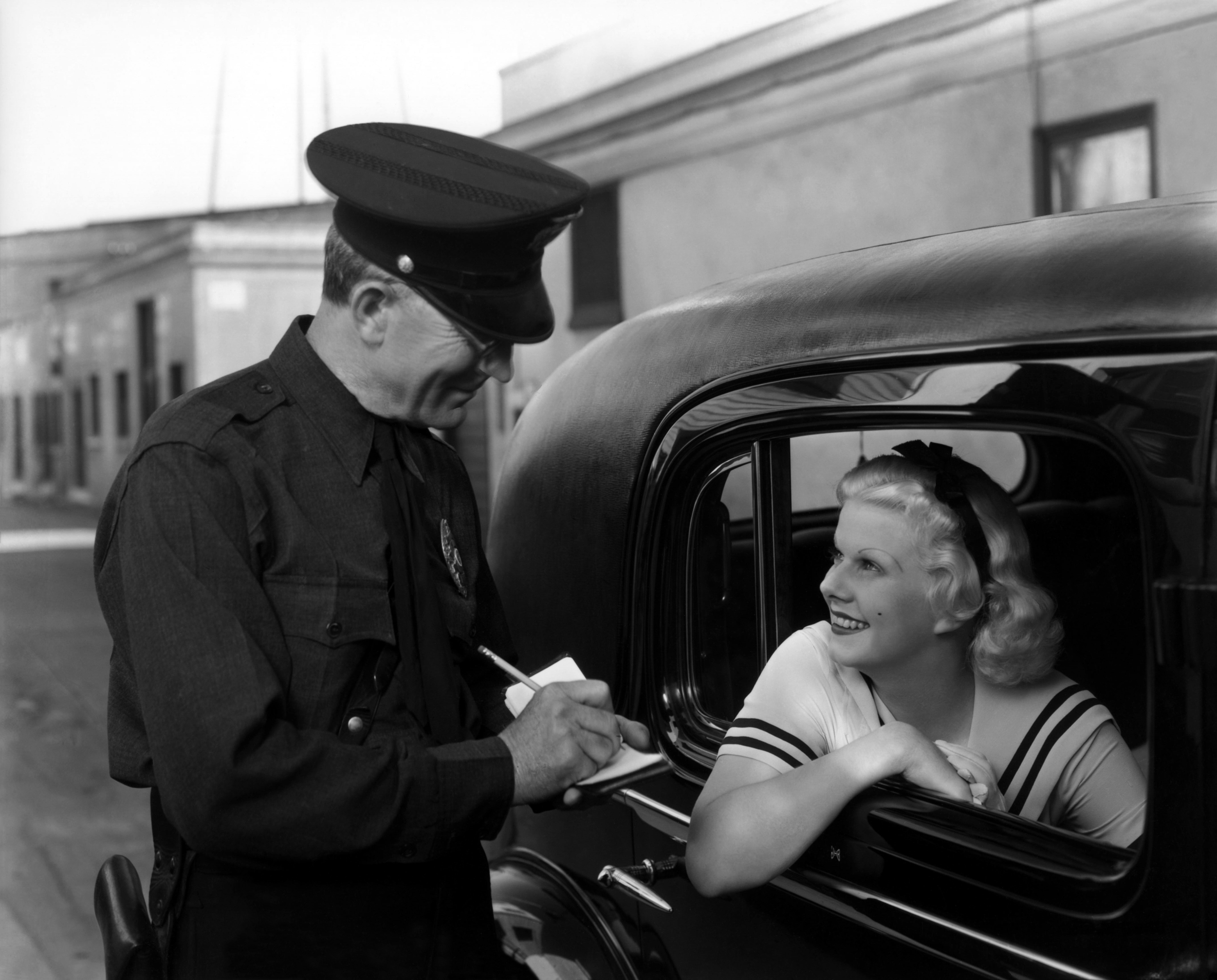 Jean Harlow leaving the M-G-M lot for the day.